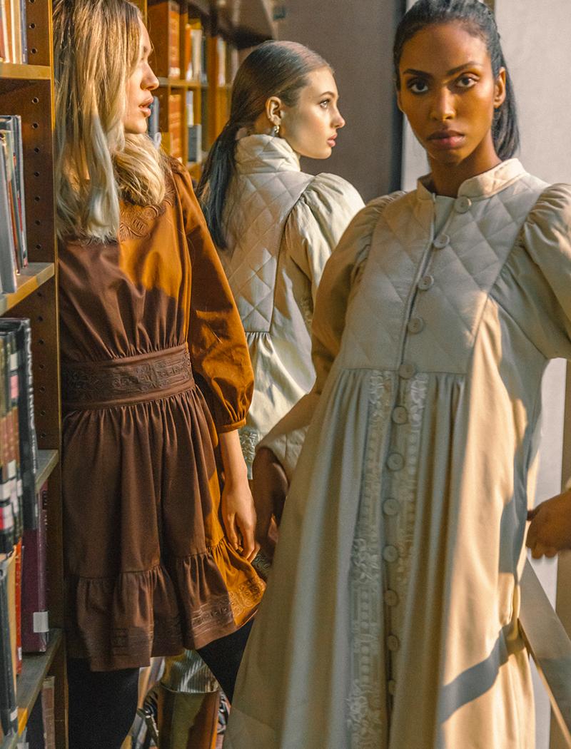 Mollat’s design career is rooted in theatre, which is evident in her appreciation for fabrication. After training as a dancer, she began making costumes for the Oslo Opera House. “I loved everything about the colours, costumes, the curtains and the drama” she recalls. Today, flowing satins, transparent georgettes and soft, yet structured organza inform byTiMo’s romantic, vintage-inspired aesthetic – but the pieces are toughened by a sense of strength and power. “I create for the ‘new romantic’ - the girl that likes to have a conscious relationship with what she wears and puts on her body, the girl that stands up for what she believes in.” Mollatt tells us.