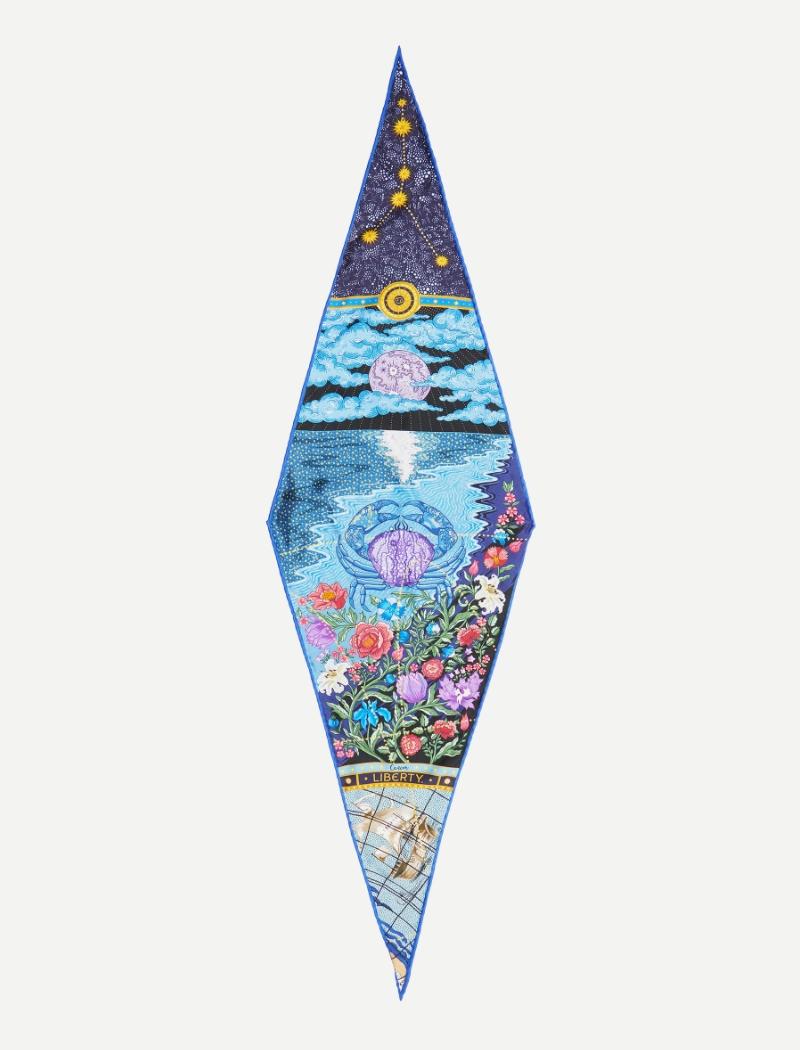 Shop the collectionTo unravel the mysteries of the year to come, Liberty is looking skyward. Painted by hand in the London studio, Liberty’s Celestial silk scarves feature 12 original artworks created for each sign of the zodiac. When combined, the full set of luxury scarves make up a star-shaped map of the sky, crossed by twinkling parallels and meridians and united by an imagined Liberty globe beneath. In celebration of this limited edition of only 45 per design, Emma Howarth of Mystical Thinking lays out her yearly horoscope for 2022 – presented as a hand-numbered commemorative card to accompany each scarf.