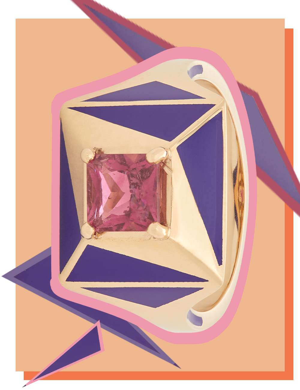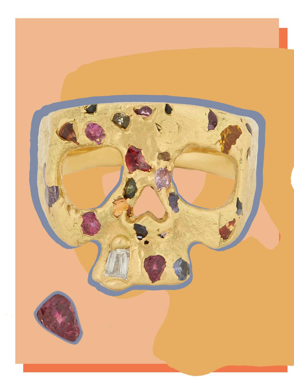 Polly Wales’ handcrafted fine jewellery exhibits a rough luxe feel, leaning into natural colourful imperfection rather than unrealistic perfection. Curate a kaleidoscopic fingerscape by teaming multiple glittering gemstone rings.