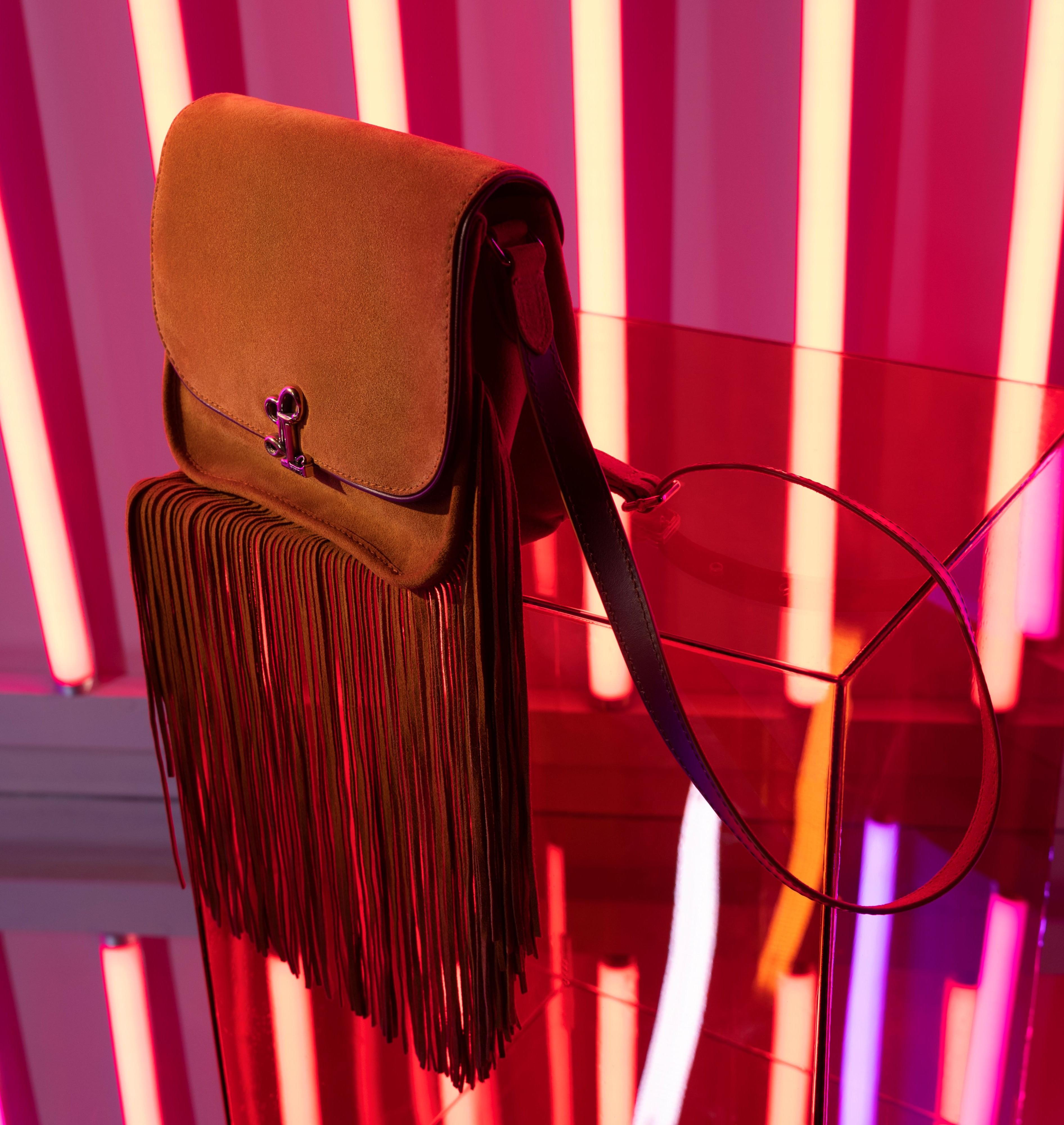 The signature fringe detailing is crafted with precise control, so each element falls naturally, maintaining rhythm and softness without adding weight or volume to the design. The fringes were developed bespoke to the Swing Bag, with a specialised device used to create a uniform drape, flow and movement throughout.