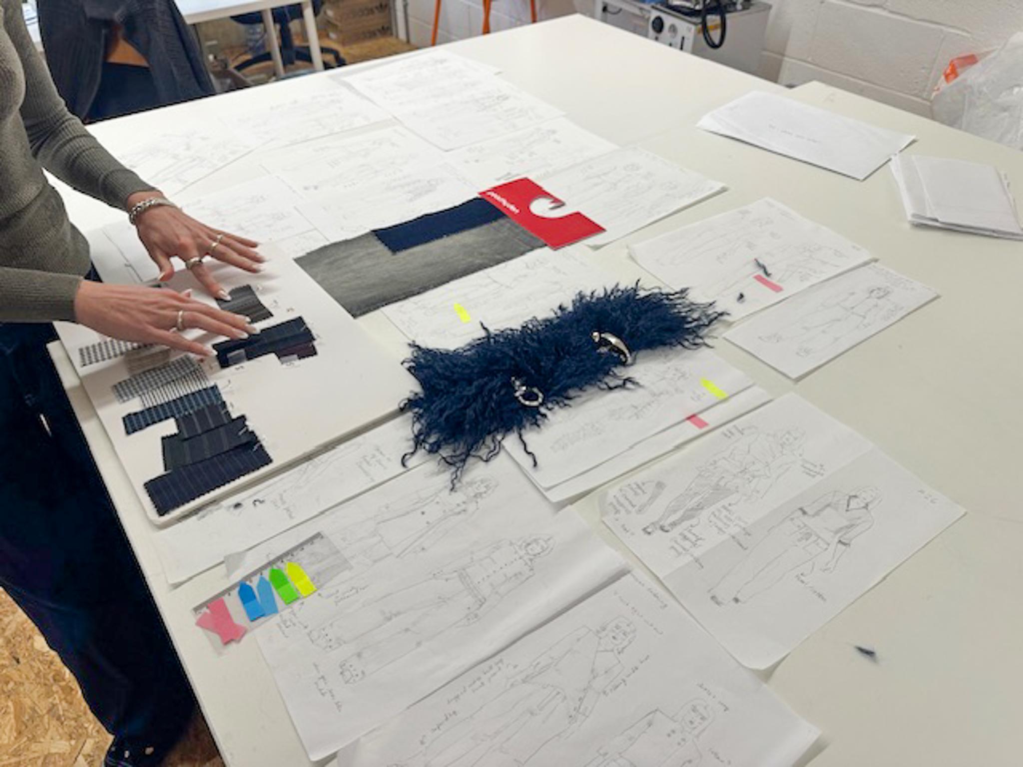 Isabella reviewing new samples in the studio
