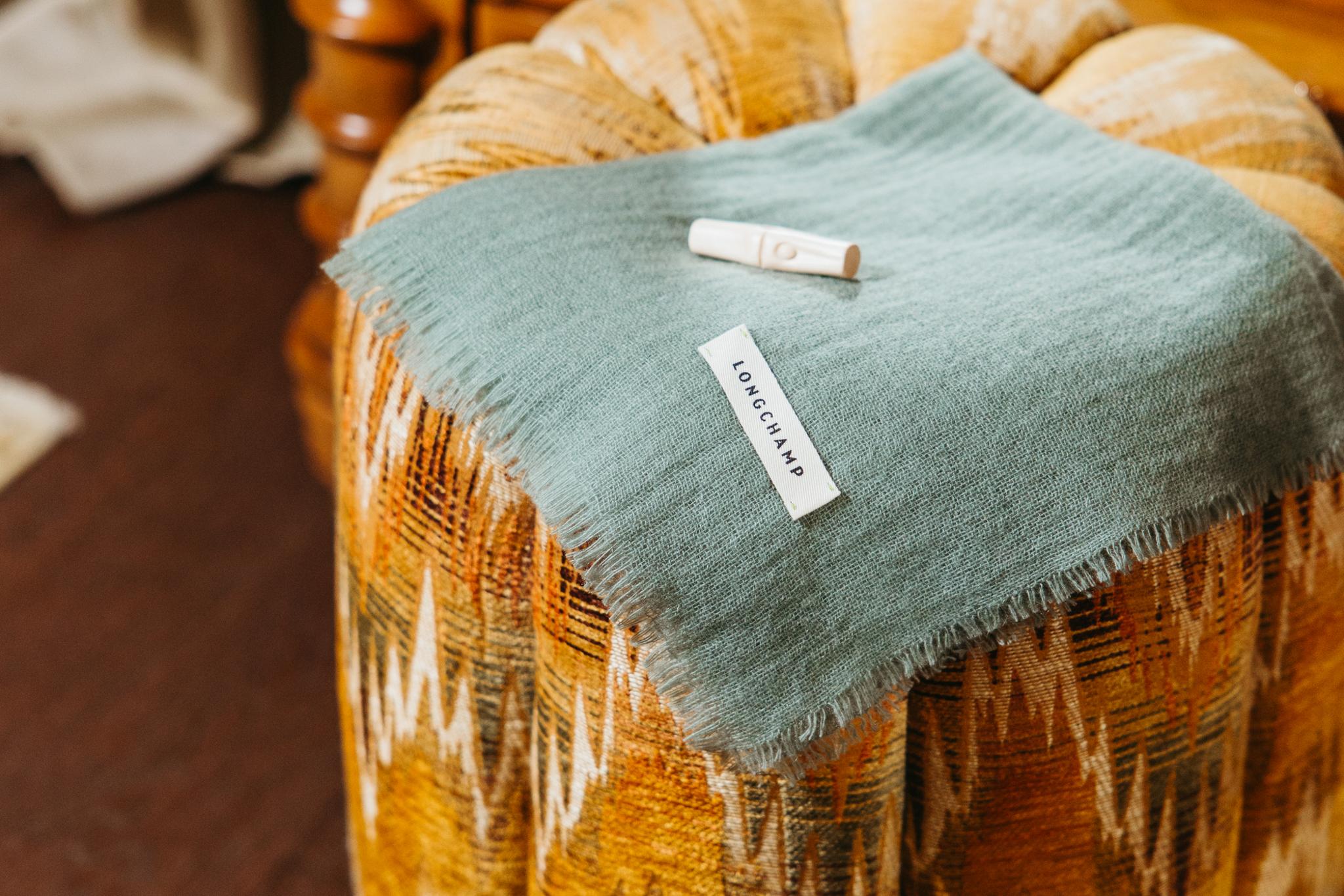 “The Le Roseau clasp, like a guiding thread, also appears across other pieces—whether in ready-to-wear creations, footwear such as our Le Roseau ballerina with its multiple straps, or here on a cashmere stole—shaping a complete wardrobe designed from head to toe. Its motif is so instantly recognizable that it has naturally established itself as an inseparable signature of our identity.