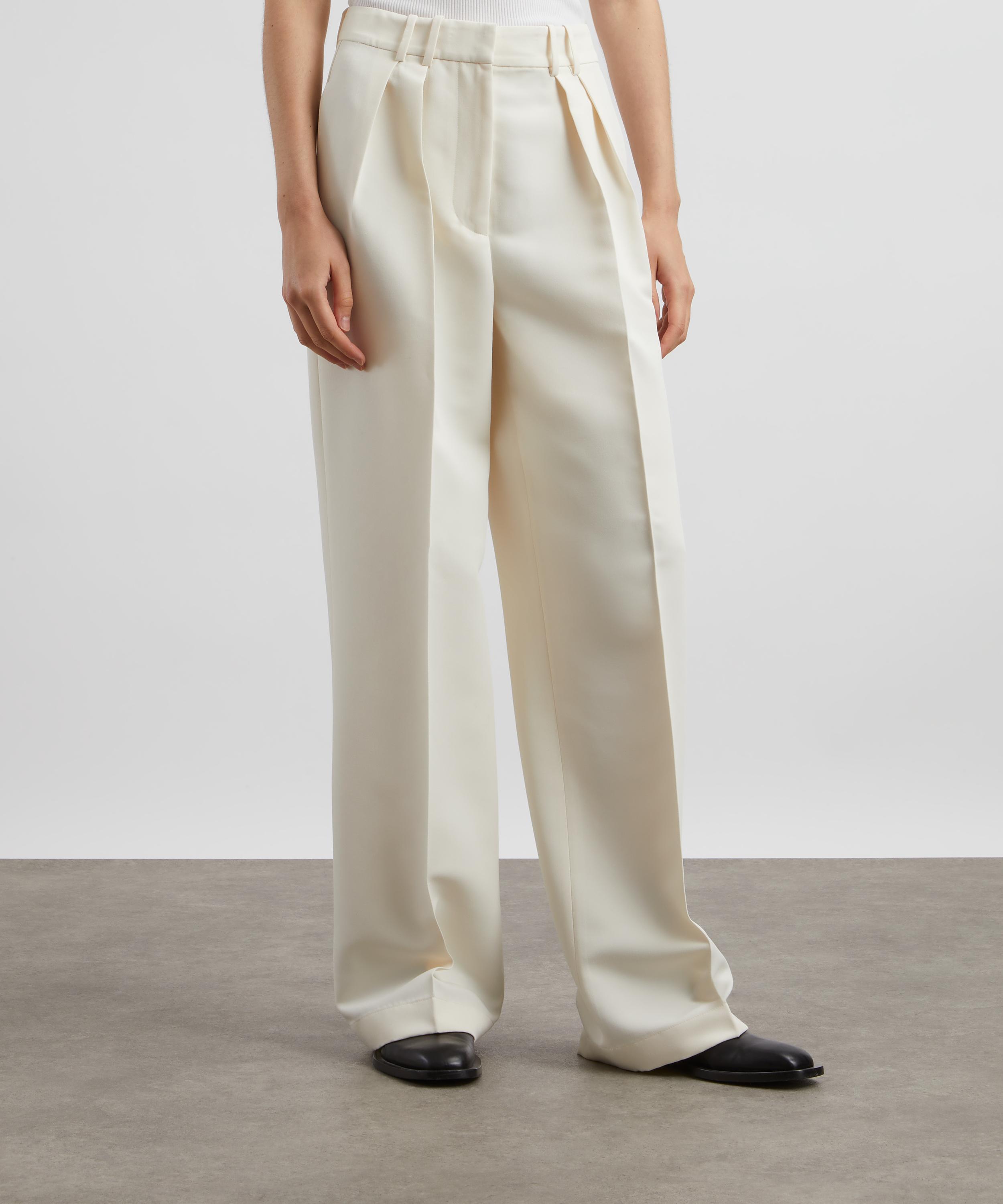 It would be nice to wear the trench coat on top of the black boatneck shaped waistcoat and our wide leg wool off white trousers on the way to a nice dinner party. With this special trench coat you make a great entrance and the waistcoat top gives a great occasion vibe at the dining table. The off white tailored trousers give a cool fresh pop to the look!"