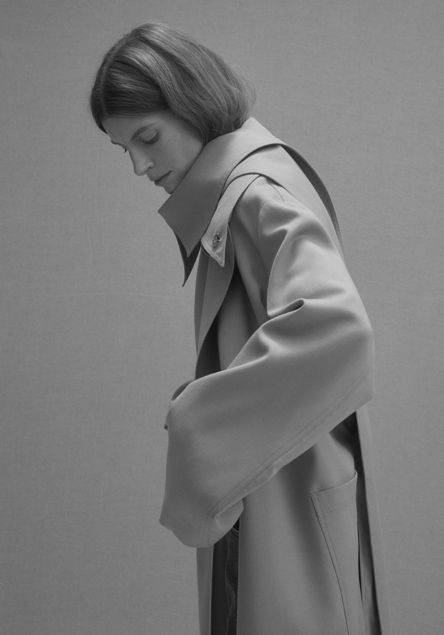 My approach to building a wardrobe is the feel of empowerment. I’m a more of a shy person, so for me it's important that clothes give me a sense of calm empowerment. The nice draped double collar on the trench coat gives me strong feeling without being too loud and this, for me, is an important sense I want to share with other women and men.