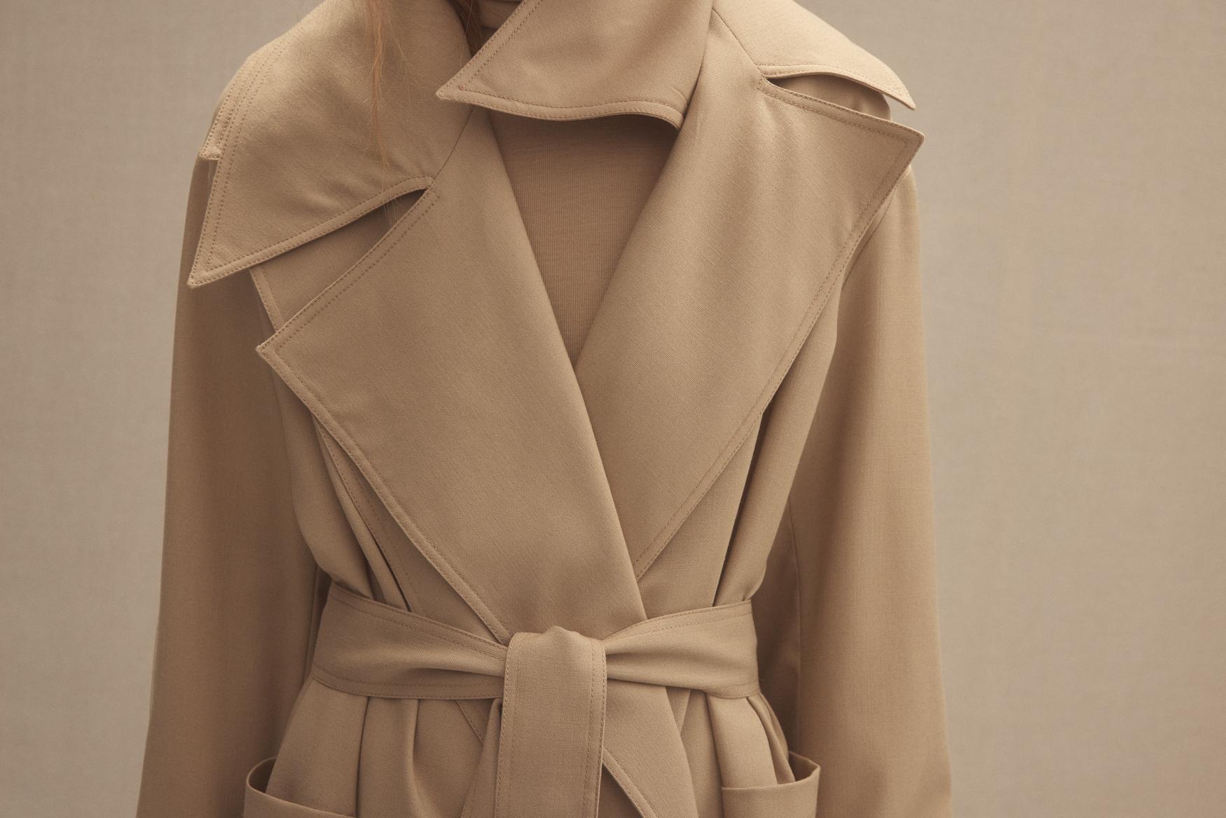 For the belted trench coat, we de-constructed a vintage trench coat and then put it back together and this is how the detachable double collar trench coat came to life. All our classics are defined by a rewritten definition of tailoring and elevated minimalism.