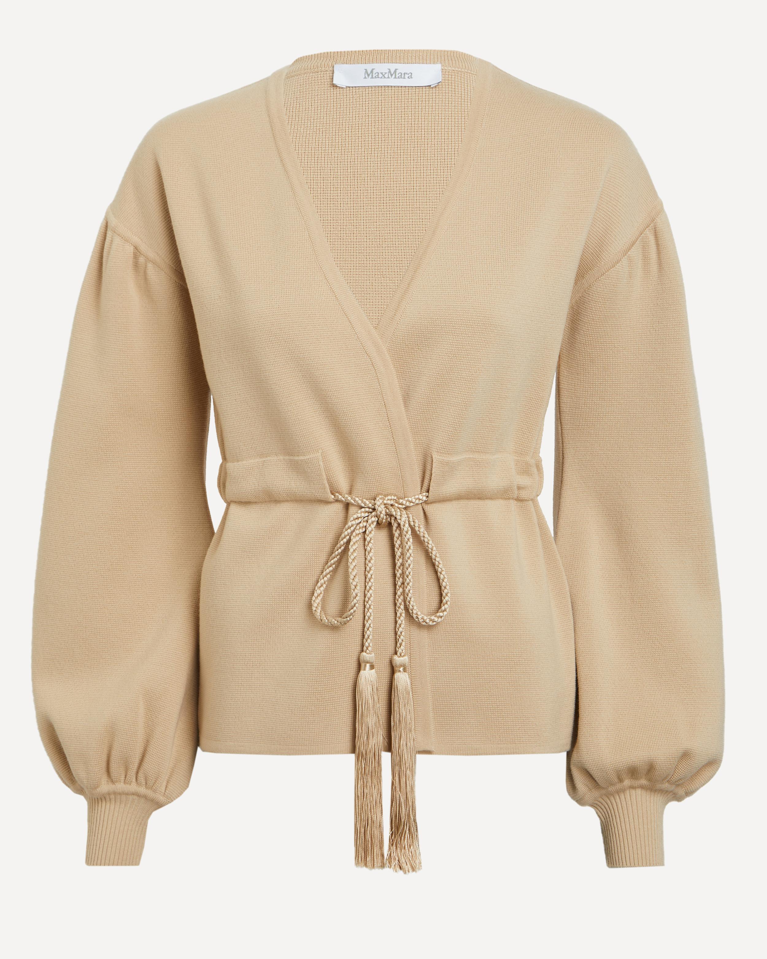 Tobacco-toned palazzo trousers in pure wool, fluid silk separates and nods to Max Mara’s tailoring expertise are peppered throughout the collection with outsize tassels, chunky drawstrings, and extravagant handkerchief cuffs denoting an elegant mood. Alongside, of course, captivating iterations of the brand’s signature coats and jackets: the cropped teddy, fluid blazers and classic camel coats in luxurious wools and cashmeres.