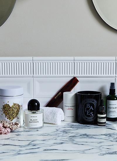 The function of the room needs to be great. It needs to look good, but also function really easily so that you can get ready quickly in the morning so storage is the most important thing in a bathroom. It needs to look nice, but you want to have all your best bits – your nicest pampering products – on display. Store the less aesthetically pleasing personal care products like deodorant or hair products in drawers.