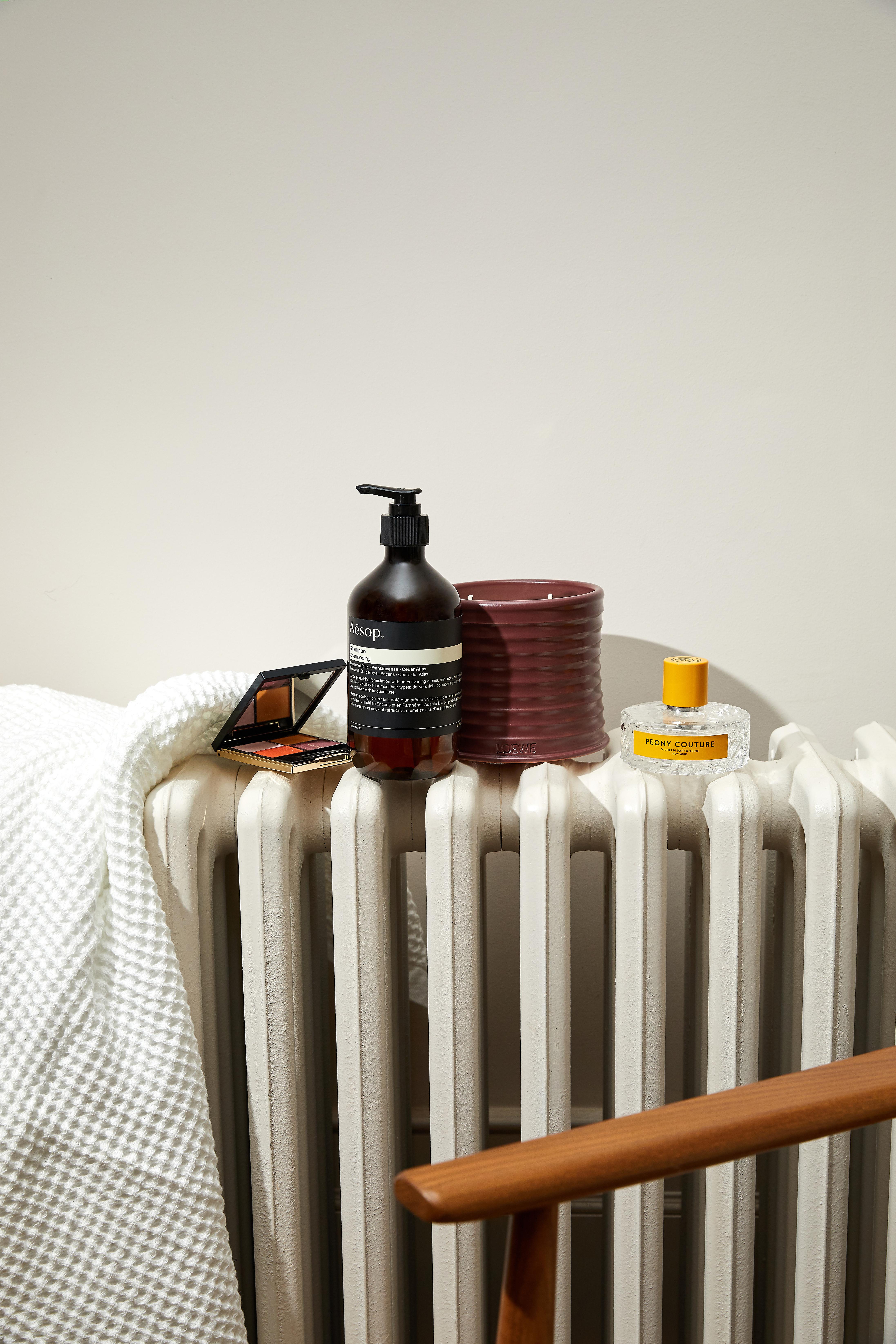 Take every opportunity to elevate the everyday in your bathroom, while keeping your functional basics accessible. Keep your cotton buds in a Murano glass container or re-purpose old candle jars. Look to the unexpected items like tumblers (which can double up as toothbrush holders) or even desk accessories - our Margaret Annie Porcelain Pen Pot could moonlight as a spirited make-up brush container.