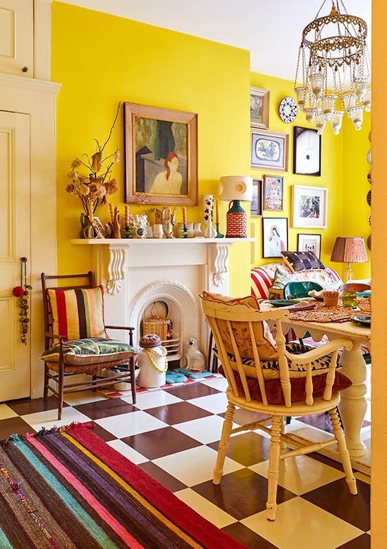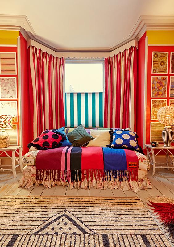 Chambers’ own home is as idiosyncratic as the area it lies within, boasting a charmingly chaotic interior, utterly befitting of its owner’s personal style. “I guess it’s what you call eclectic,” she says, perched atop a striped red sofa piled high with embroidered cushions, canary yellow walls as her backdrop. “I’m a real magpie when it comes to ‘things’. I love colour and pattern and texture from everywhere in the world, so it’s not quite anything, nor clearly defined. It’s a melting pot.”