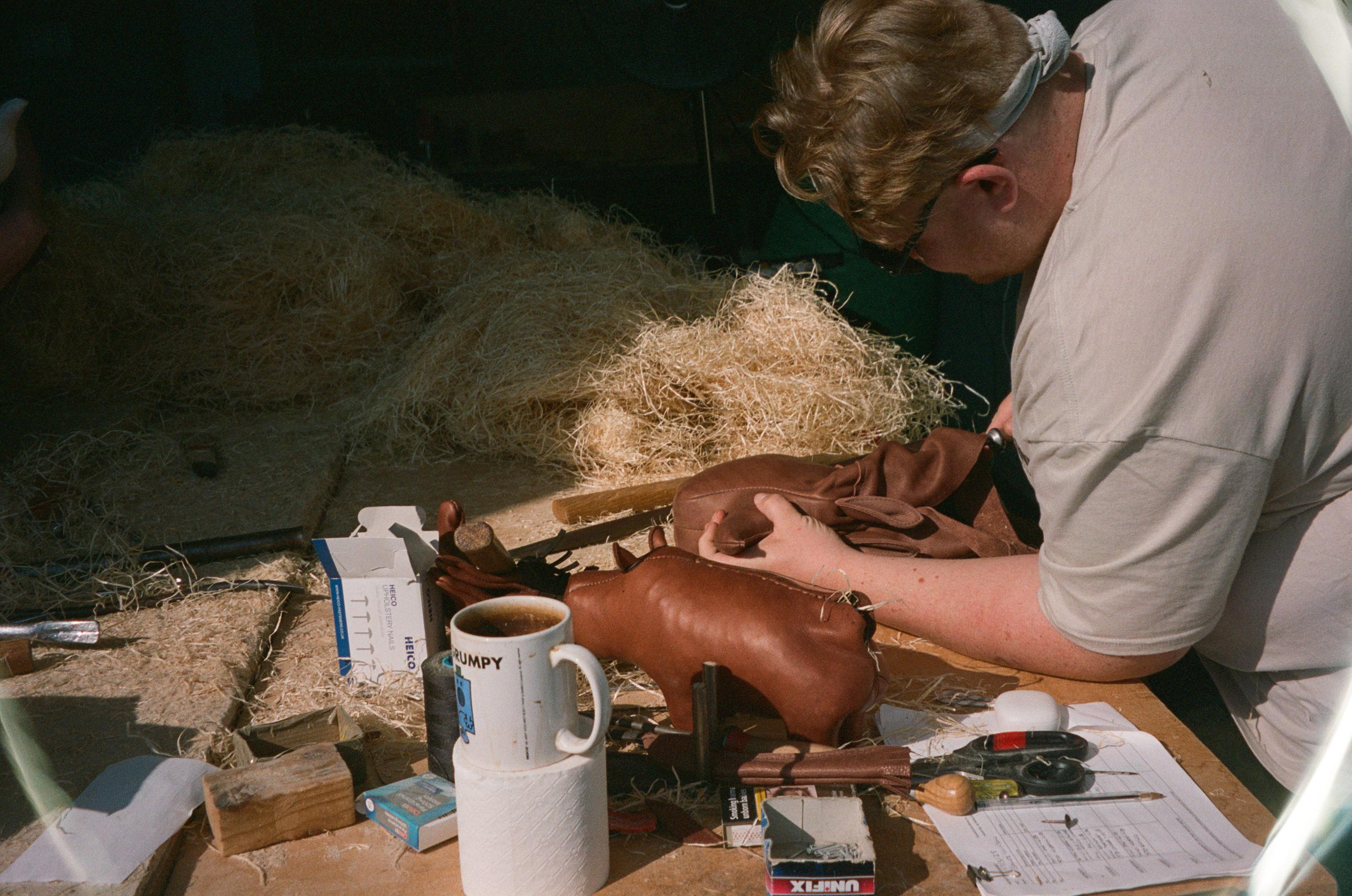After this, a range of skilled artisans start to build up the shape of the piece. A sturdy metal frame is put inside of the animal, and we use a product called wood wool to create the shape of the pieces. This part of the making process is a very skilled art: it takes a lot of training and a lot of time to understand how best to do it.
