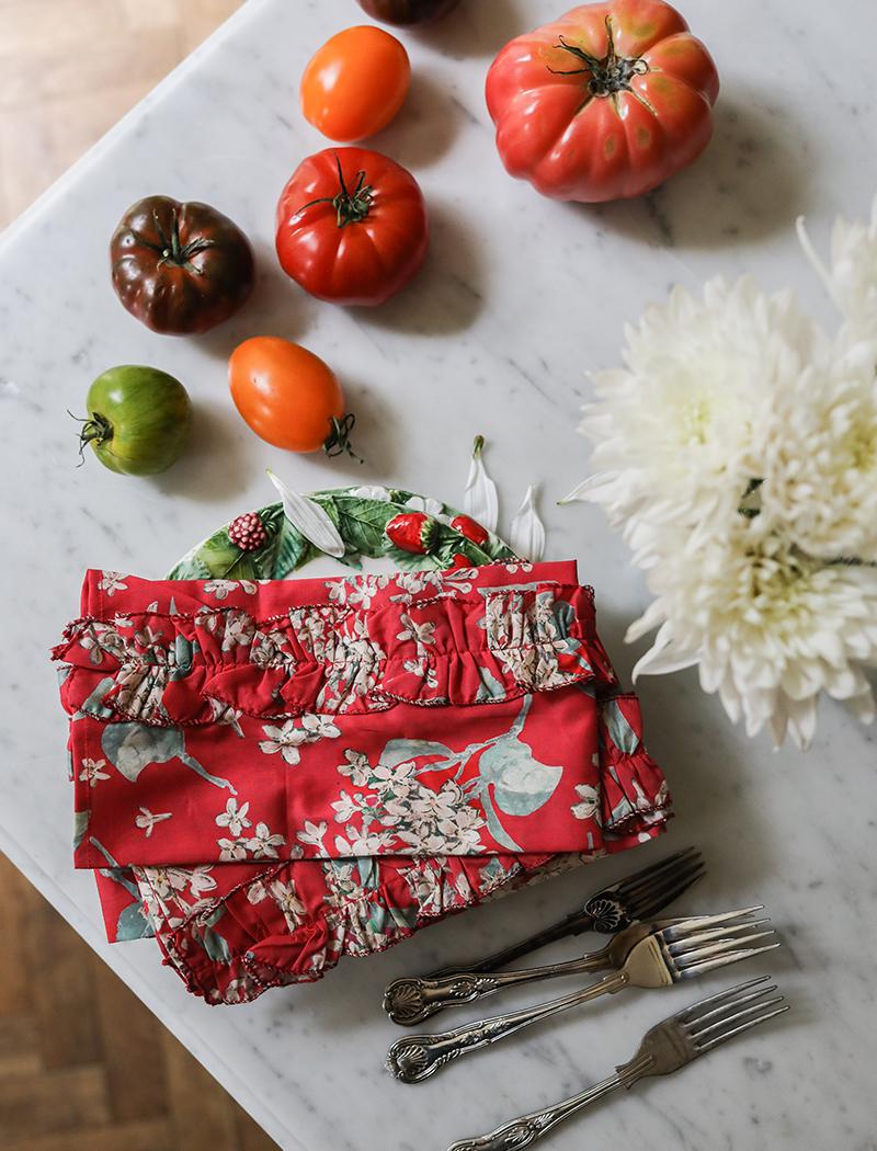 We wanted something floral and chintzy that still felt timeless. I also love that the prints – with the strong red – feel quite festive, but because of the floral pattern they will work just as well for lunch al fresco in the garden mid-summer. I don’t like to buy things just for special occasions, I like to fill my home with things that I love and that I can use all the time.