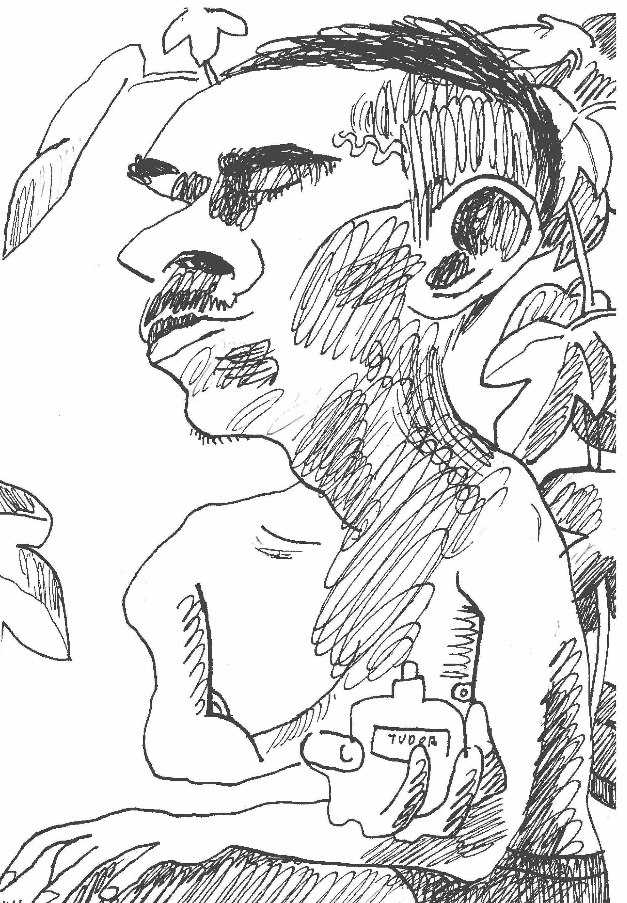 I painted my muse Theo in the garden, with a bottle of Liberty LBTY. Fragrance Tudor, surrounded by wasps and nettles and a huge hornet that landed on my neck as I was working.