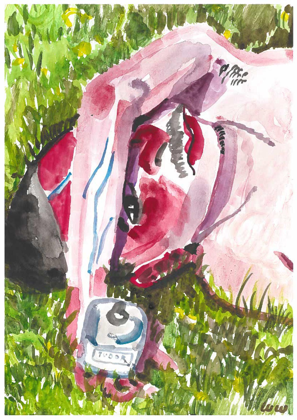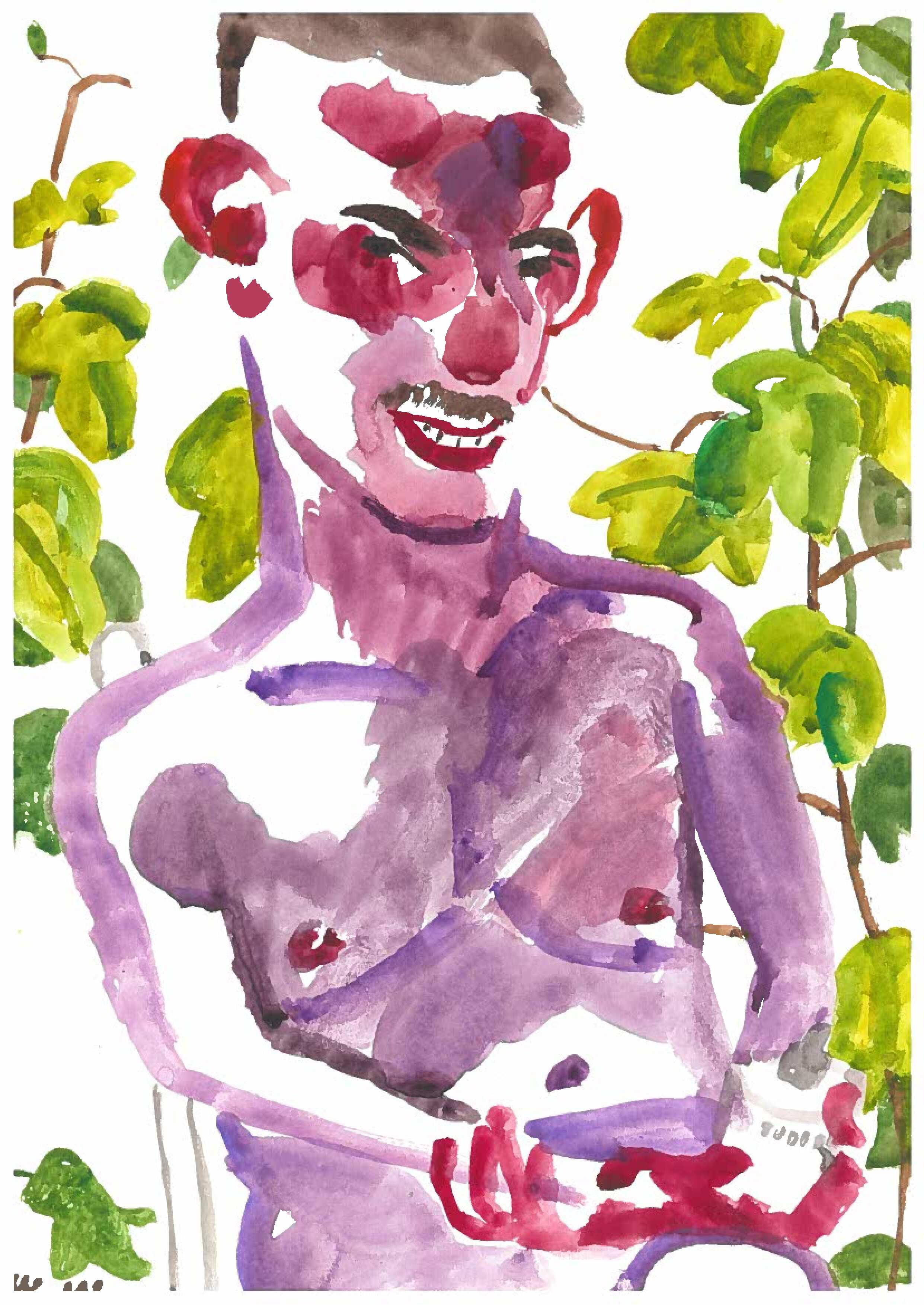 These are drawings in pen and ink and watercolours, painted at my parents’ house in Sussex. It’s where I grew up, so I know every inch of it really well, especially the garden. It’s really nice to come back here to create this work.