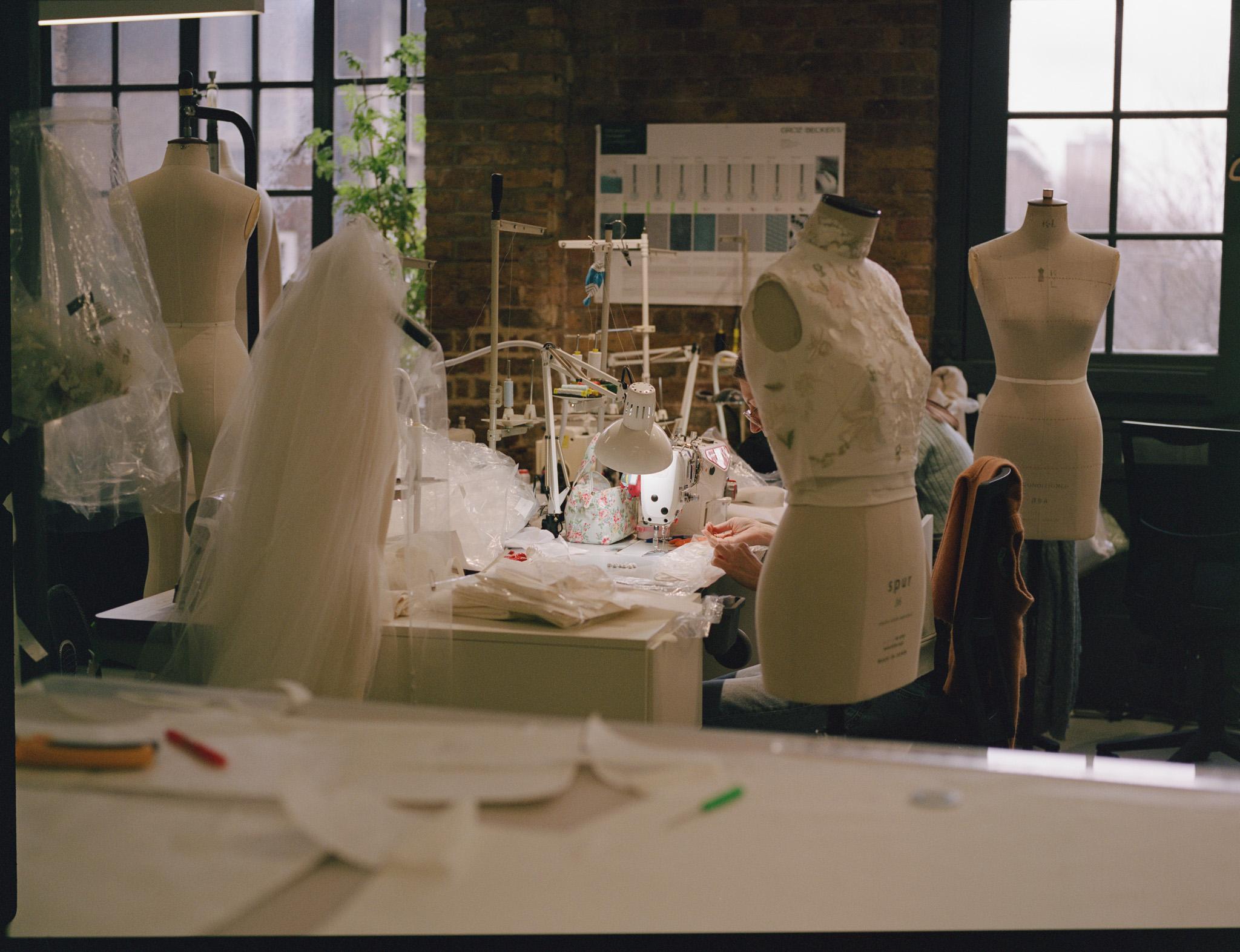 All of our very special things are made here. Special show pieces. Anything that’s made bespoke, or for special clients. All of our toiles. Anything that’s new comes through the atelier. This table was the pattern cutting table from our former studio in Bethnal Green; we had it take apart, cut down and brought over. So many collections were made on this table, so I felt like it had to live here. It’s my favourite object in the studio.