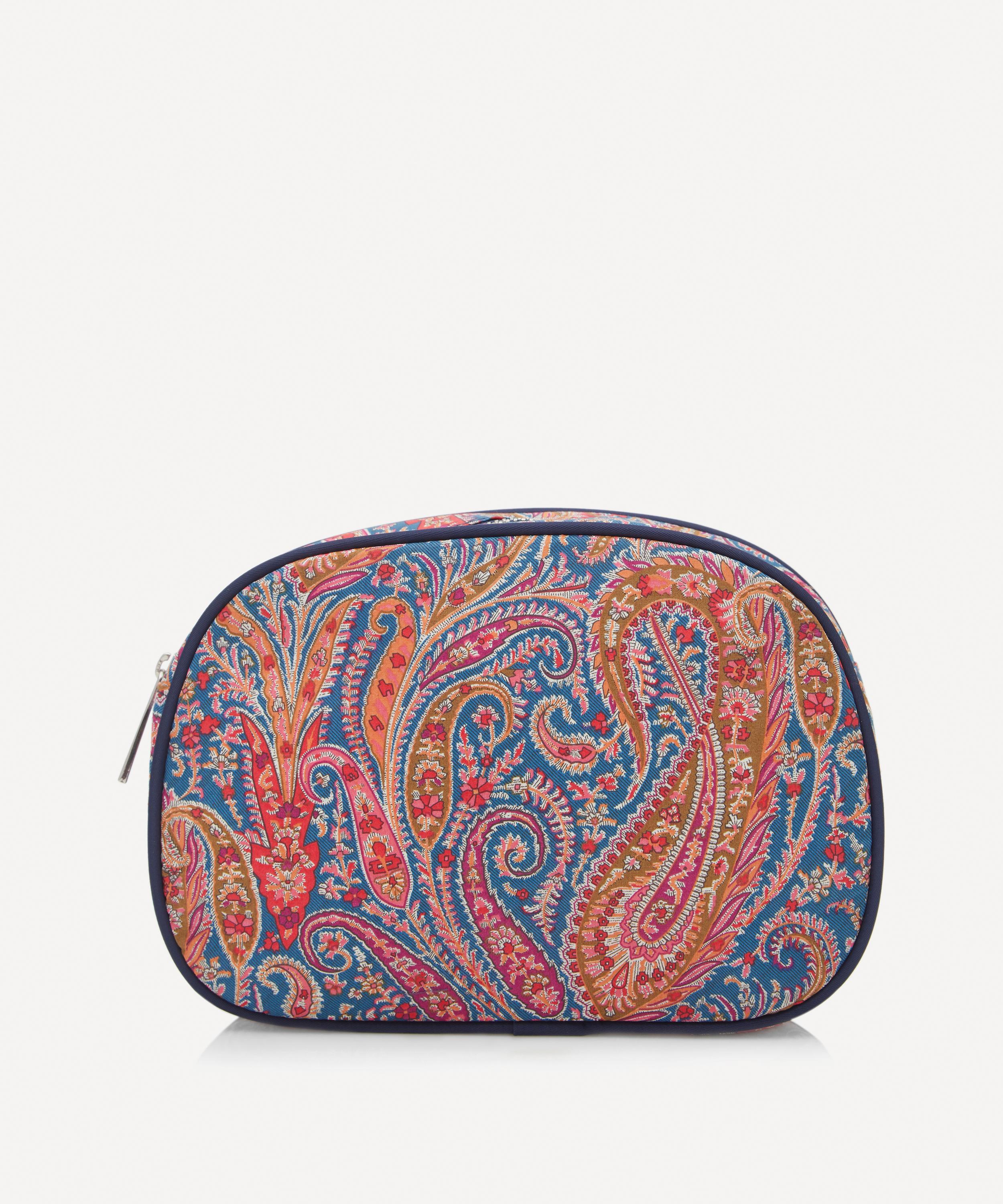 Our exclusive structured makeup bag is spacious enough to house all manner of cosmetics and tools, yet compact enough to tuck into your day bag or carry-on – a practical way to introduce Liberty print into your repertoire. Felix and Isabelle was derived from a dress fabric design originally based on an archival paisley shawl drawing. The print joined the Tana Lawn™ cotton collection in 2013, and reappears seasonally in fabulous new colourways.