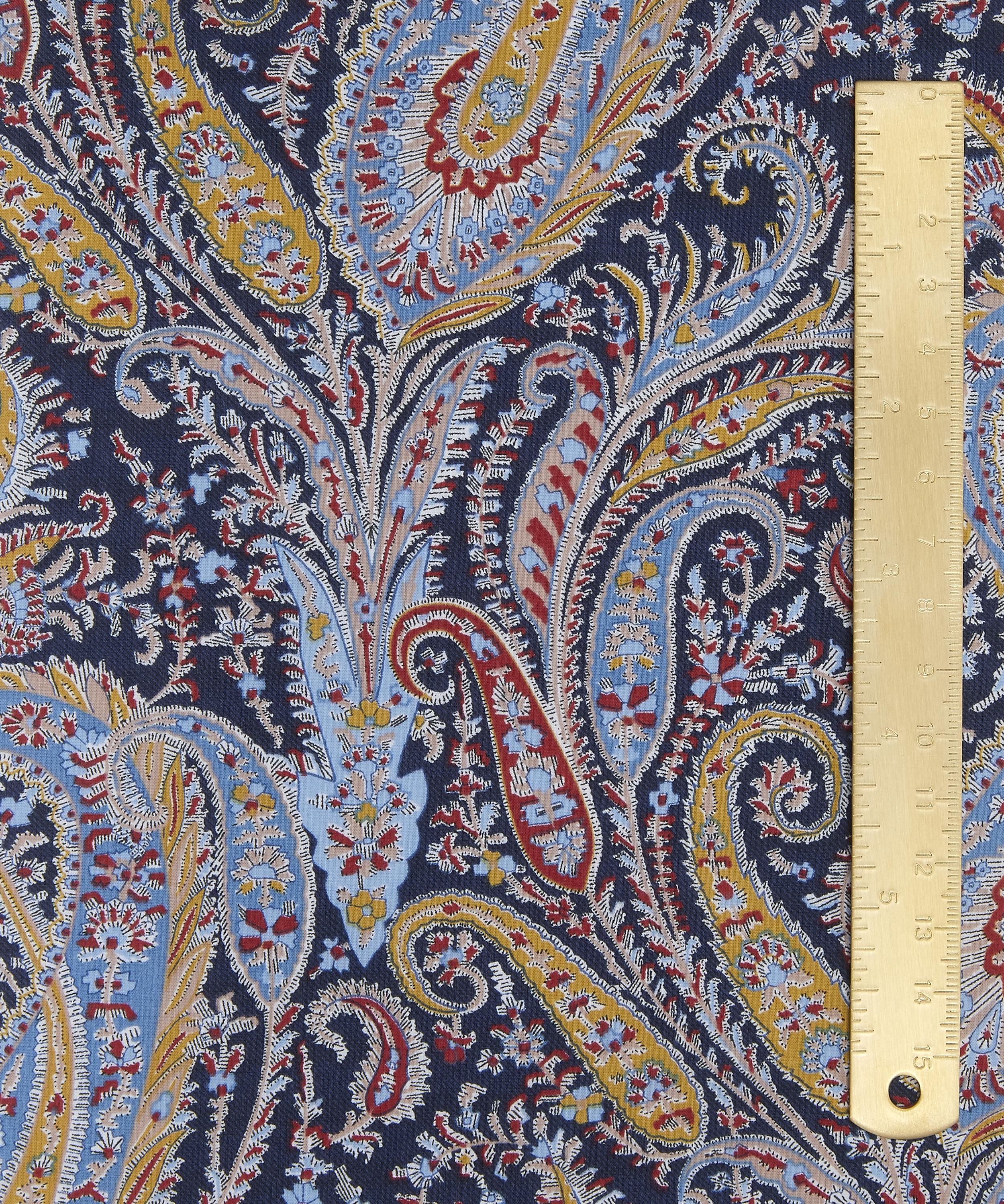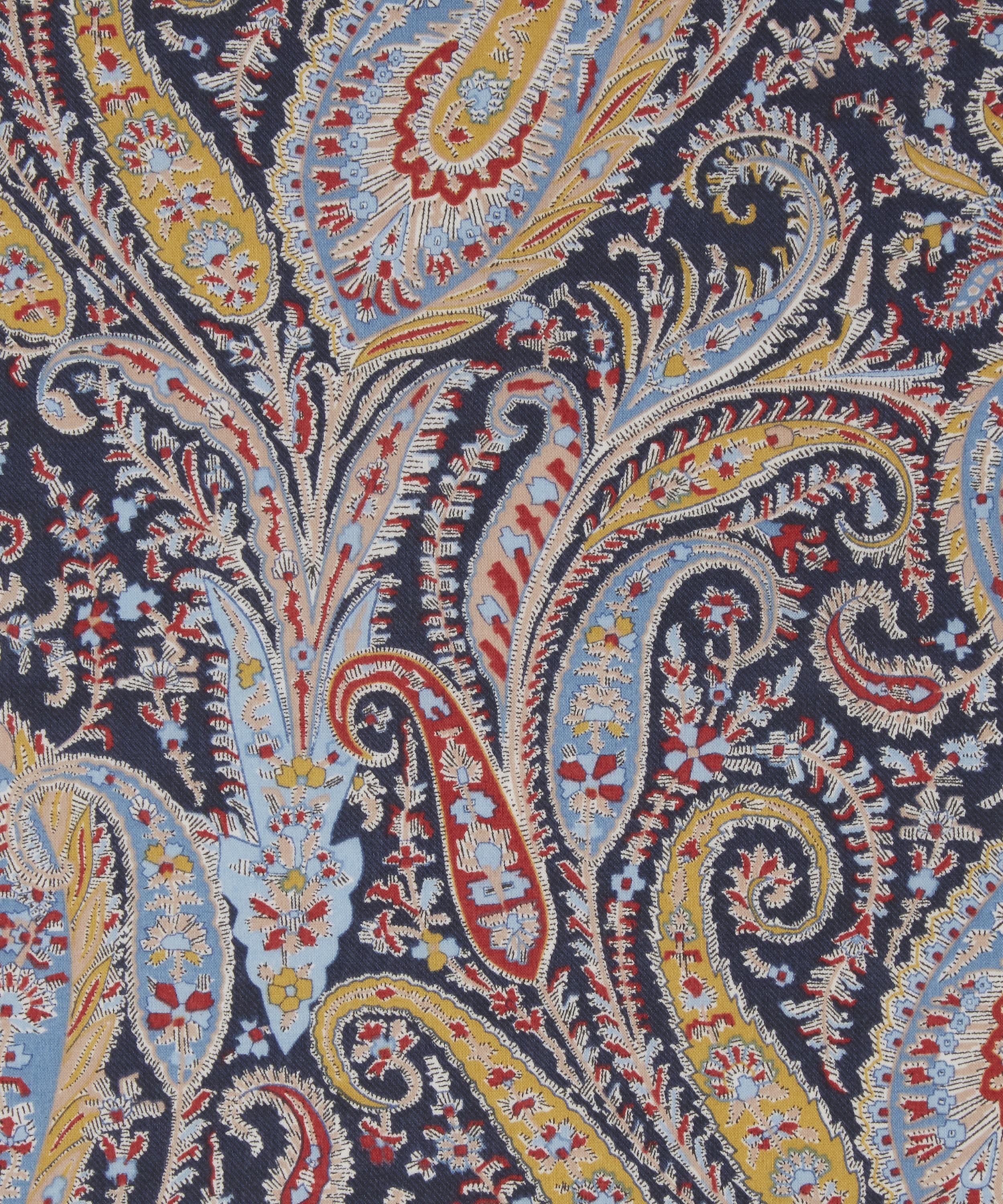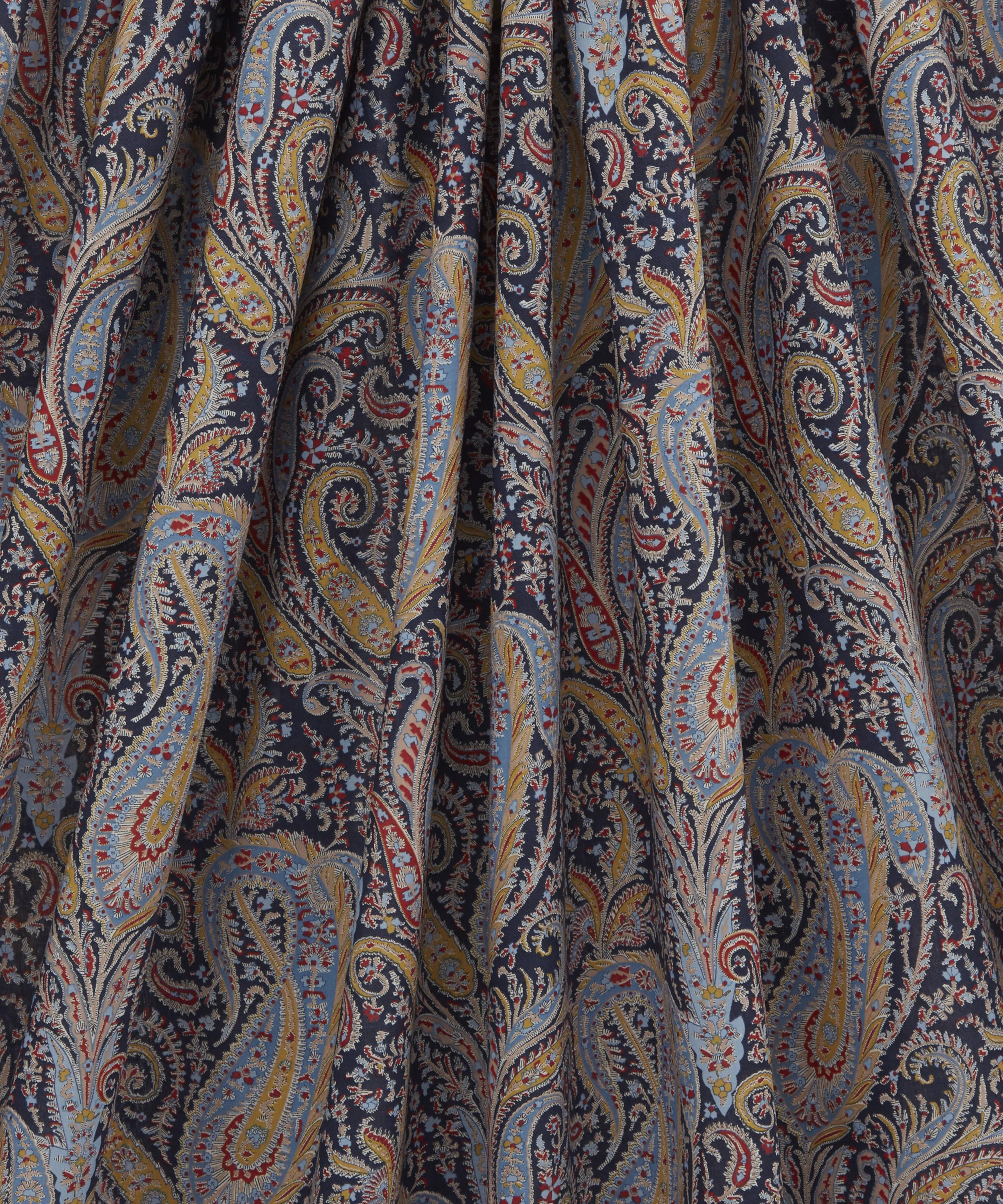 Felix and Isabelle is drawn from a shawl design found in the Liberty archive and dating from the 1850s. Elements were drawn from its paisley layout and reimagined by the design studio into a completely new design.