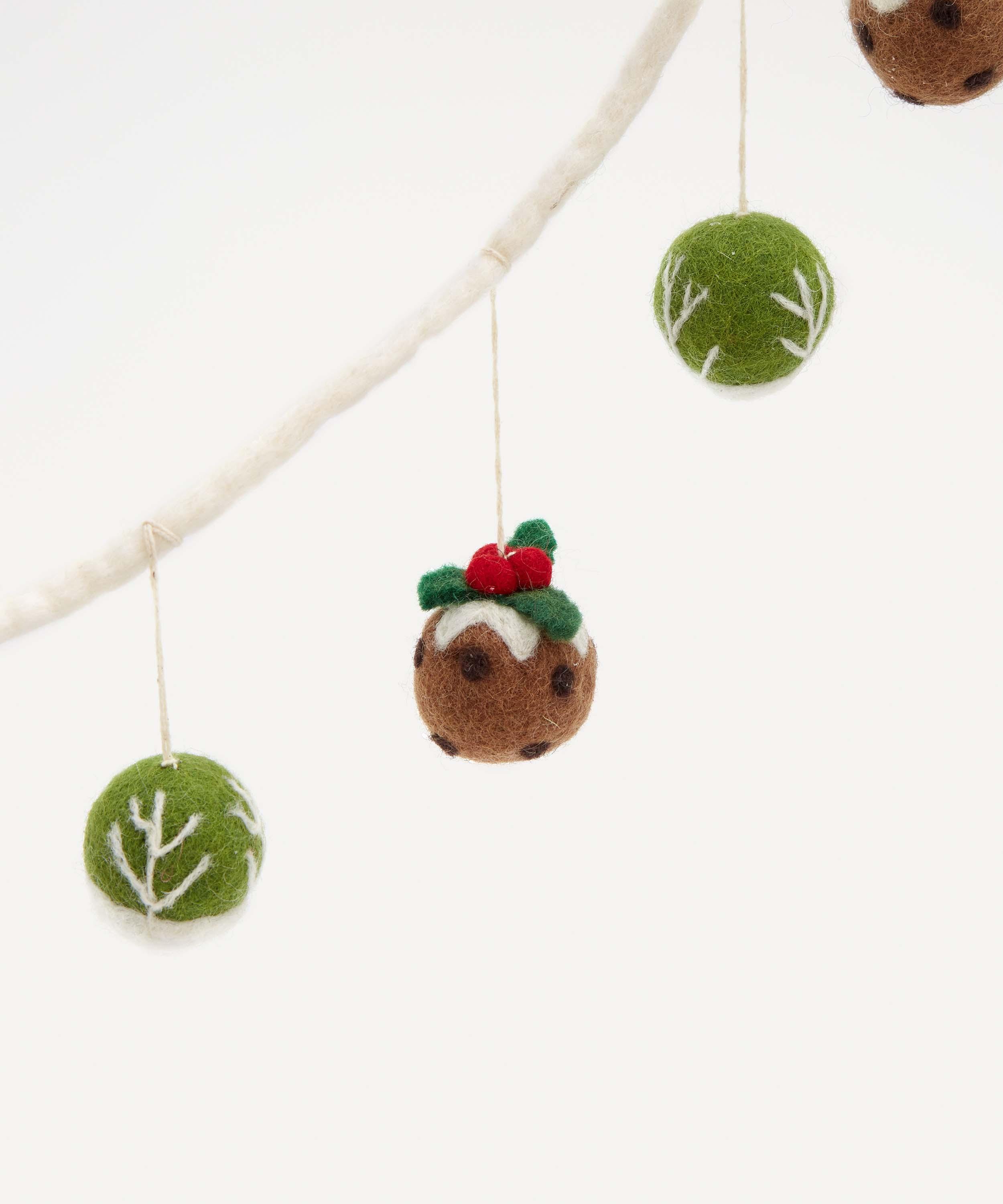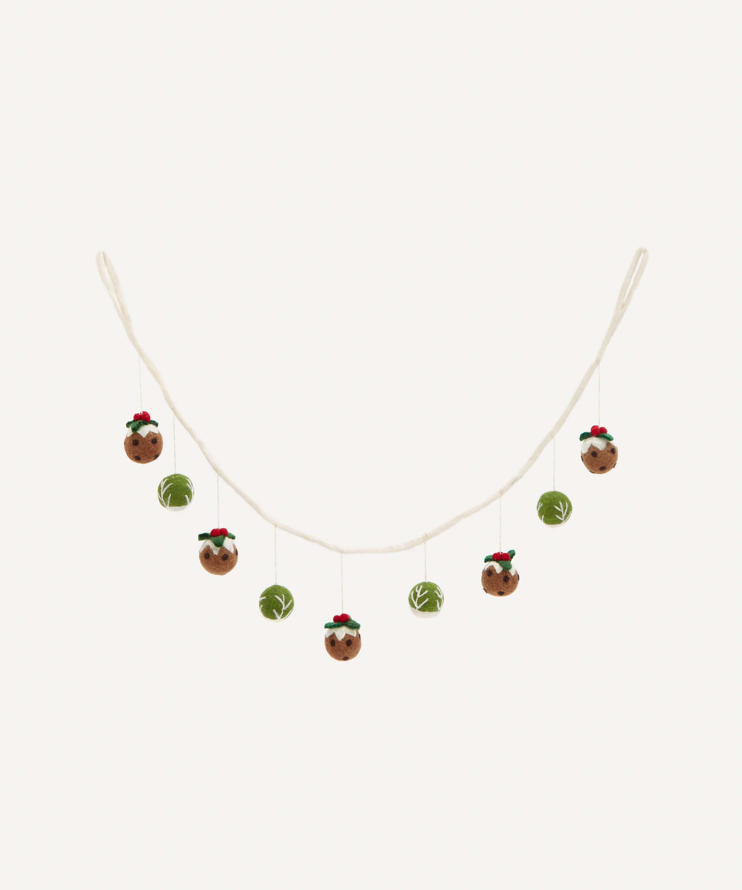 Make interiors feel extra festive with this eye-catching Christmas garland – it deserves pride of place within your seasonal décor. Made from soft felt, it features alternating sprout and Christmas pudding designs – offering a delightful seasonal spruce for your home. Hang above the mantelpiece, on the bannisters, or even above your bed if you feel like it.