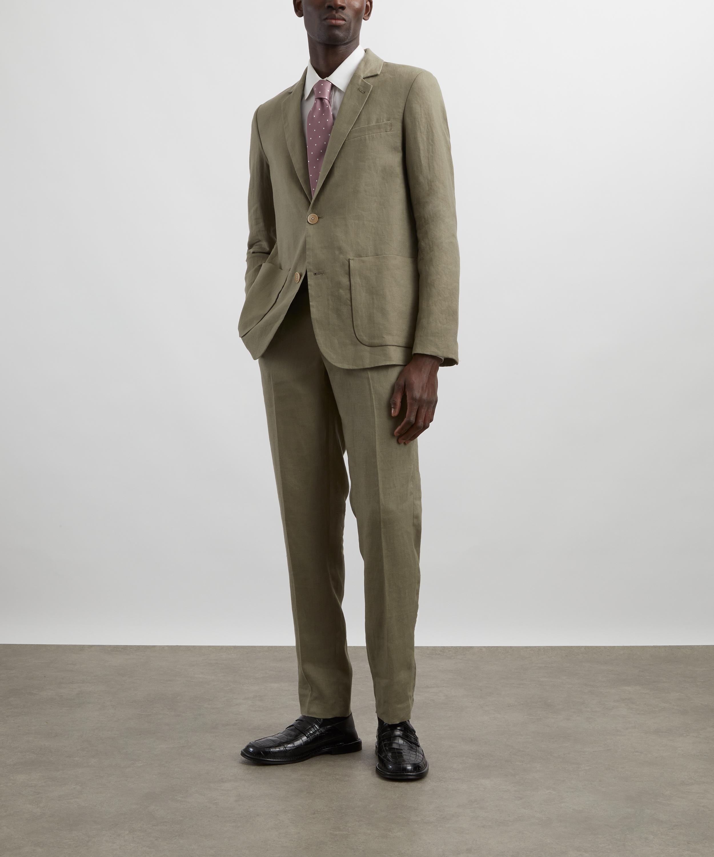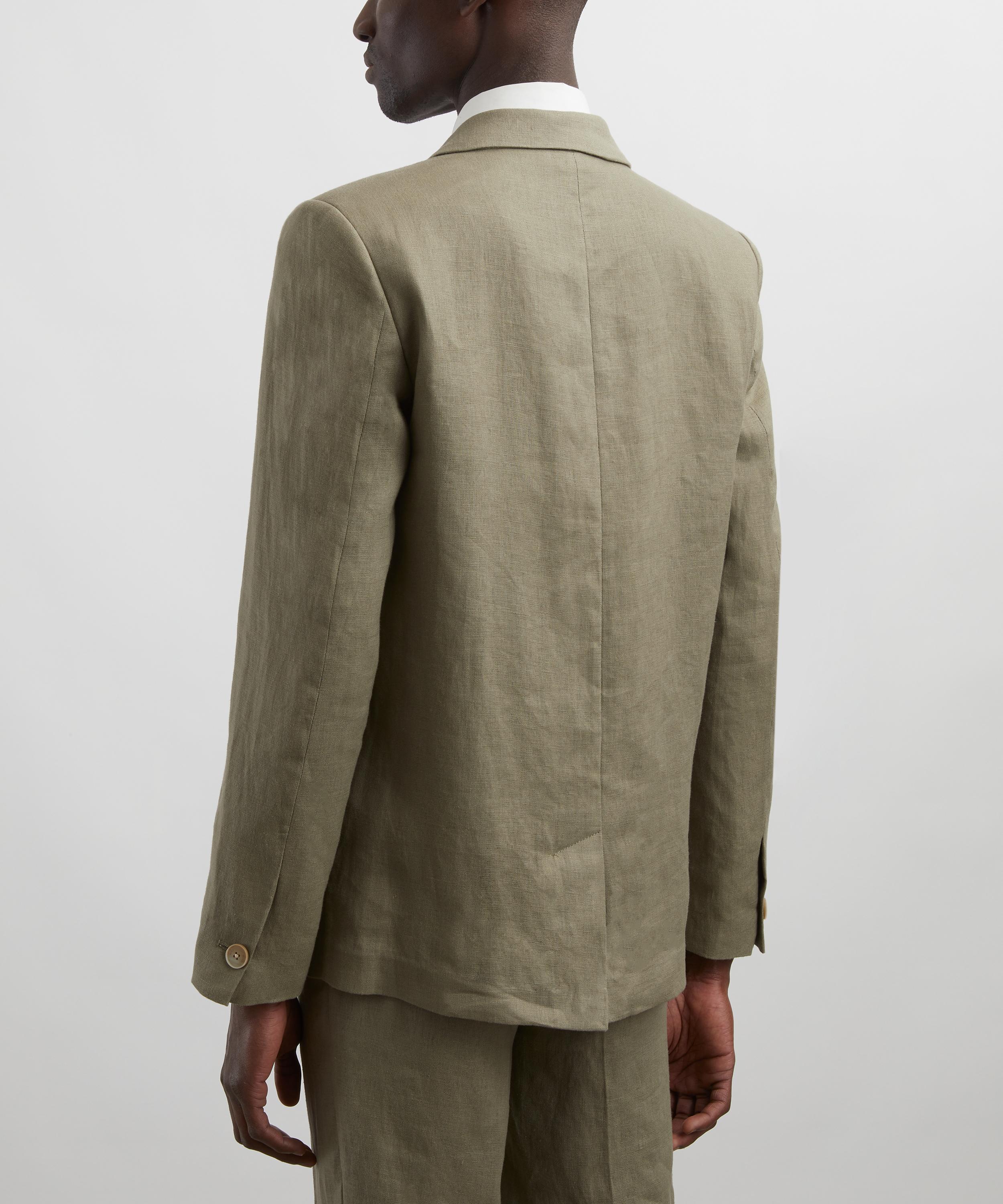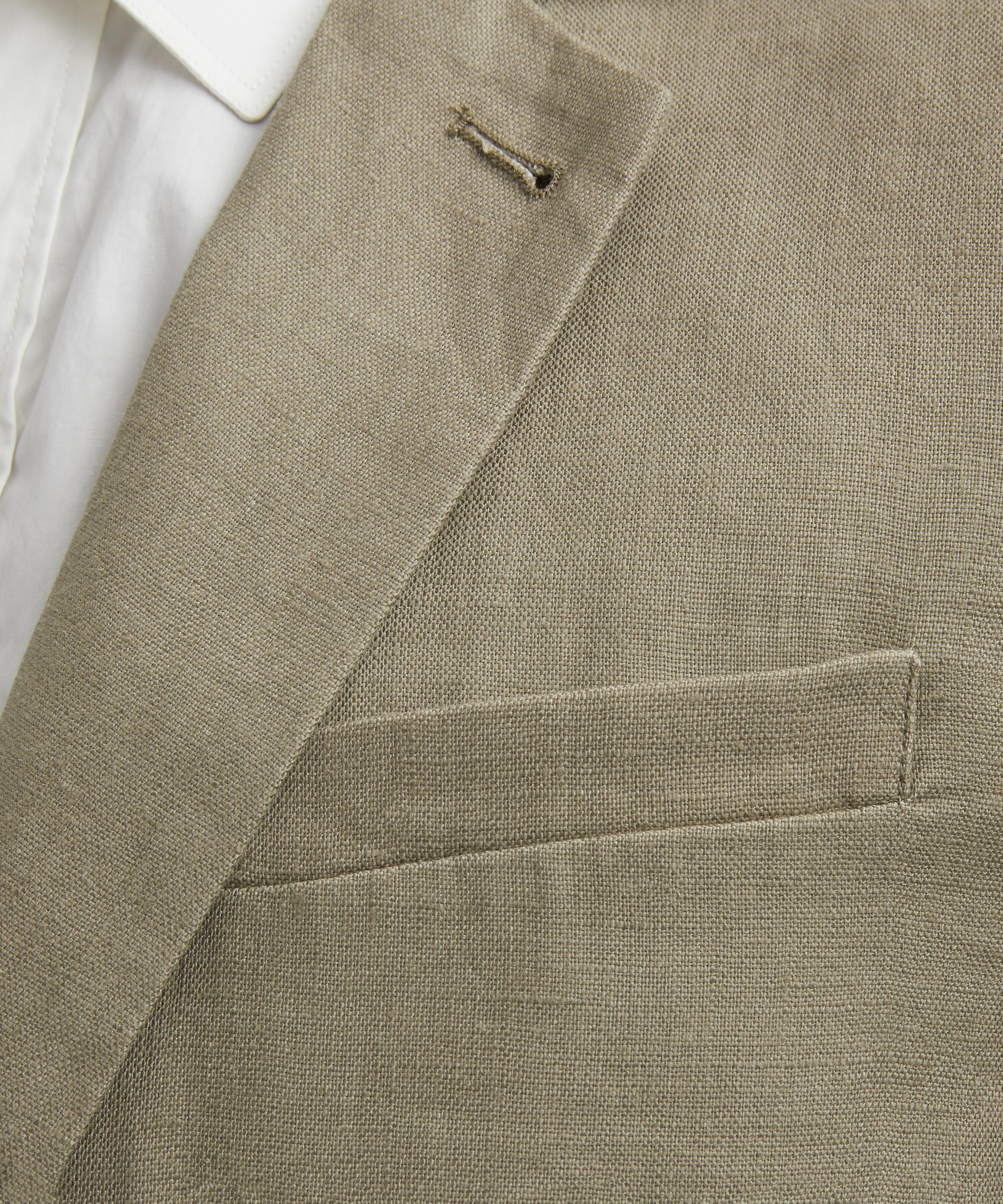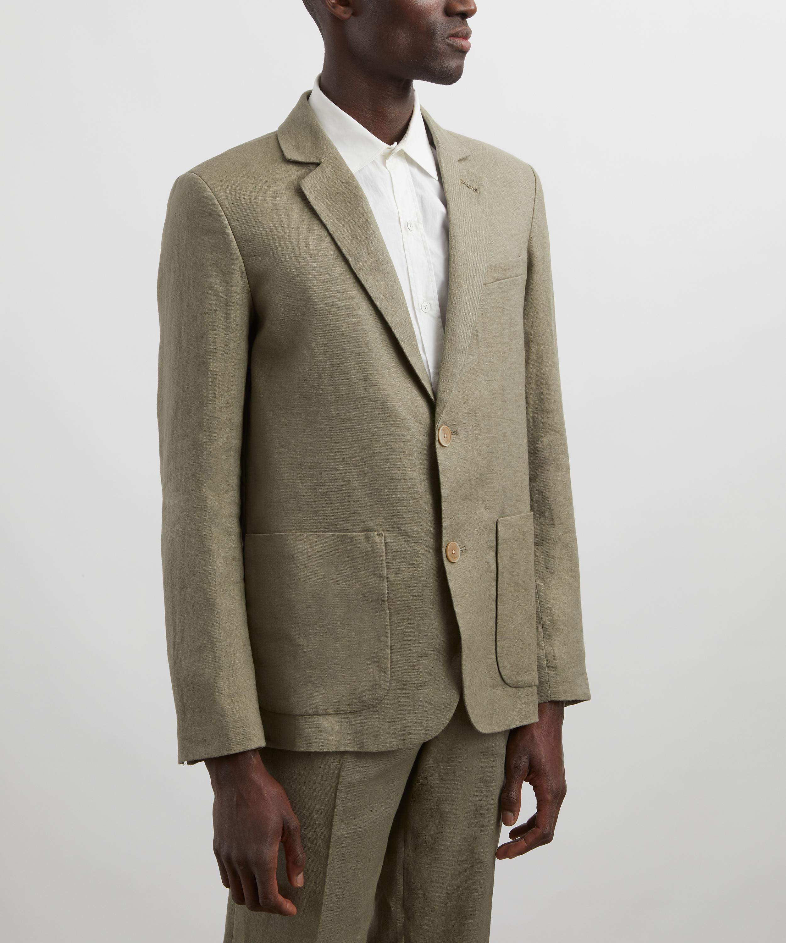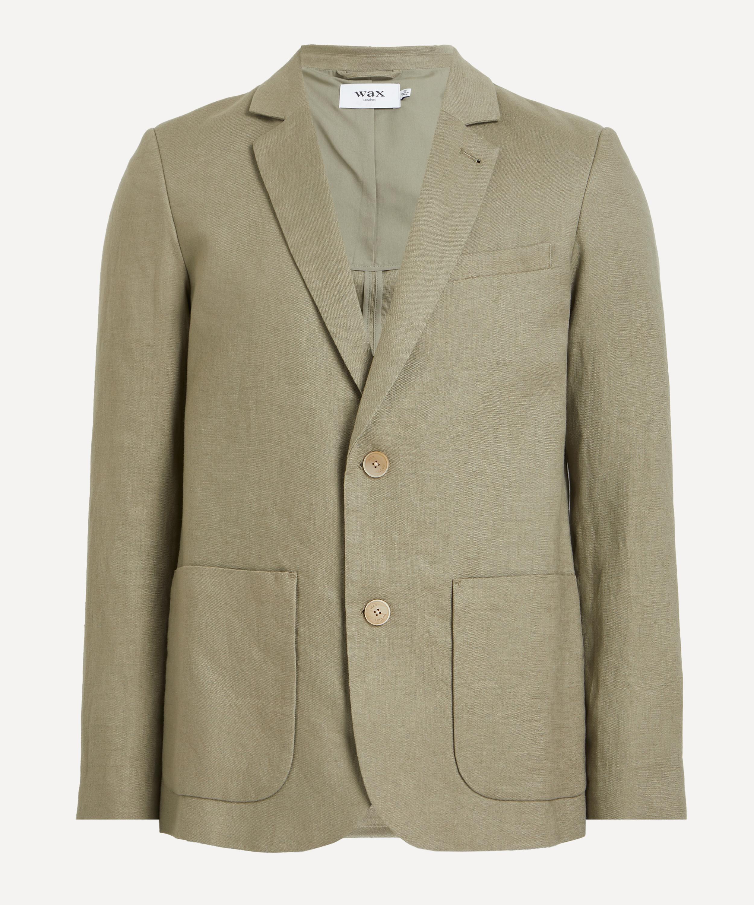 Wax London puts a refined twist on a workwear staple with the Fintry Khaki Linen Blazer.