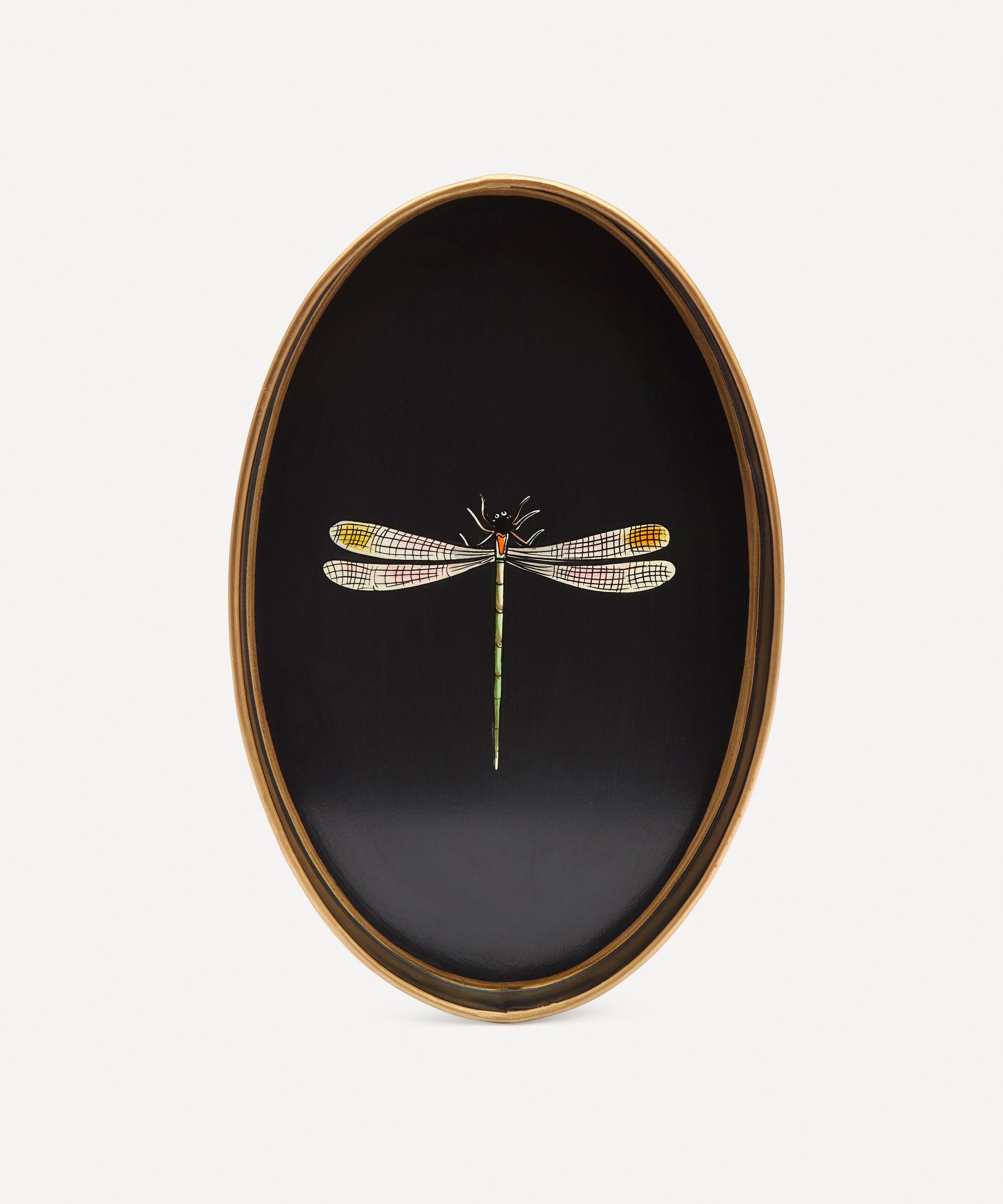 - Hand-painted dragonfly motif
