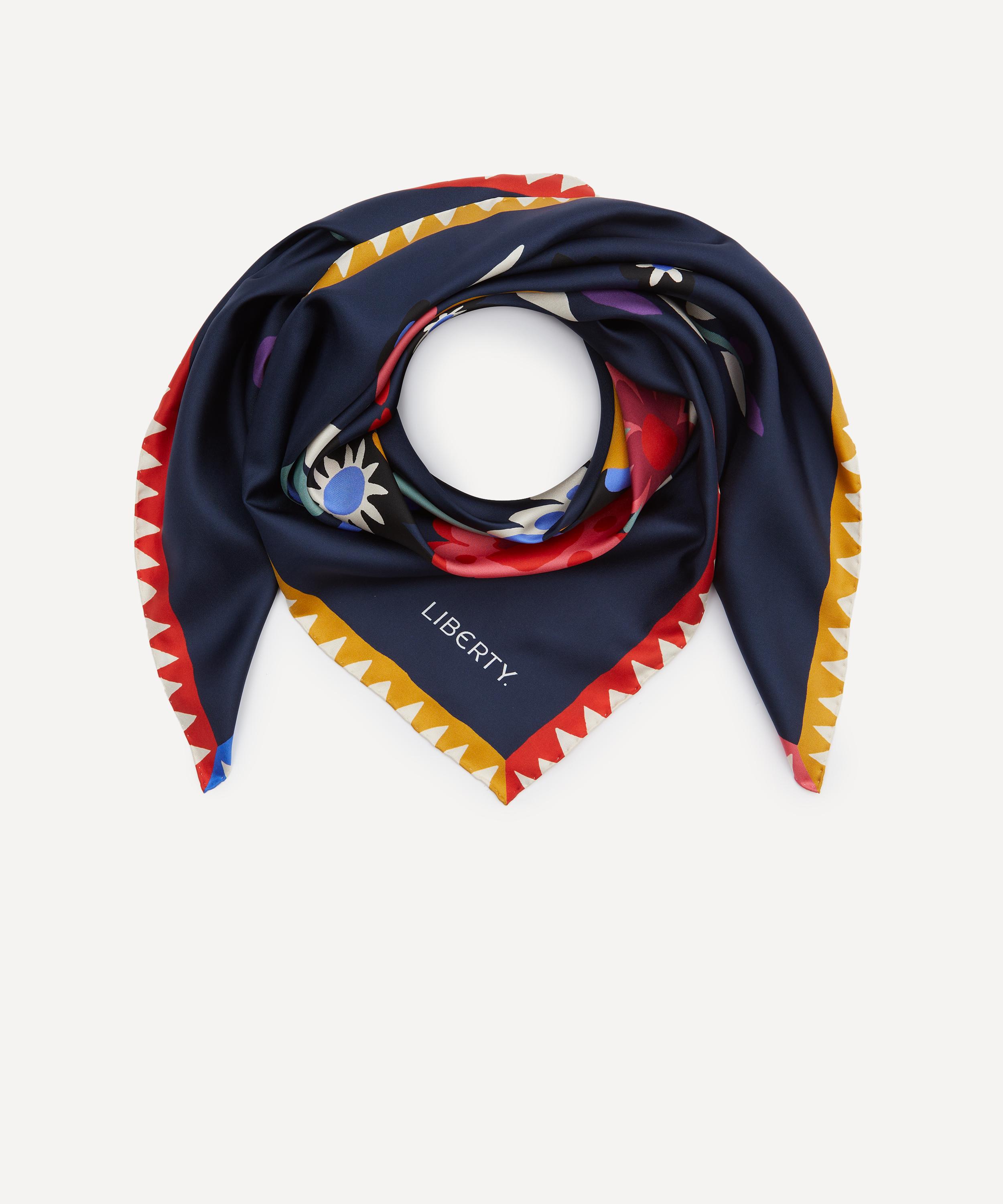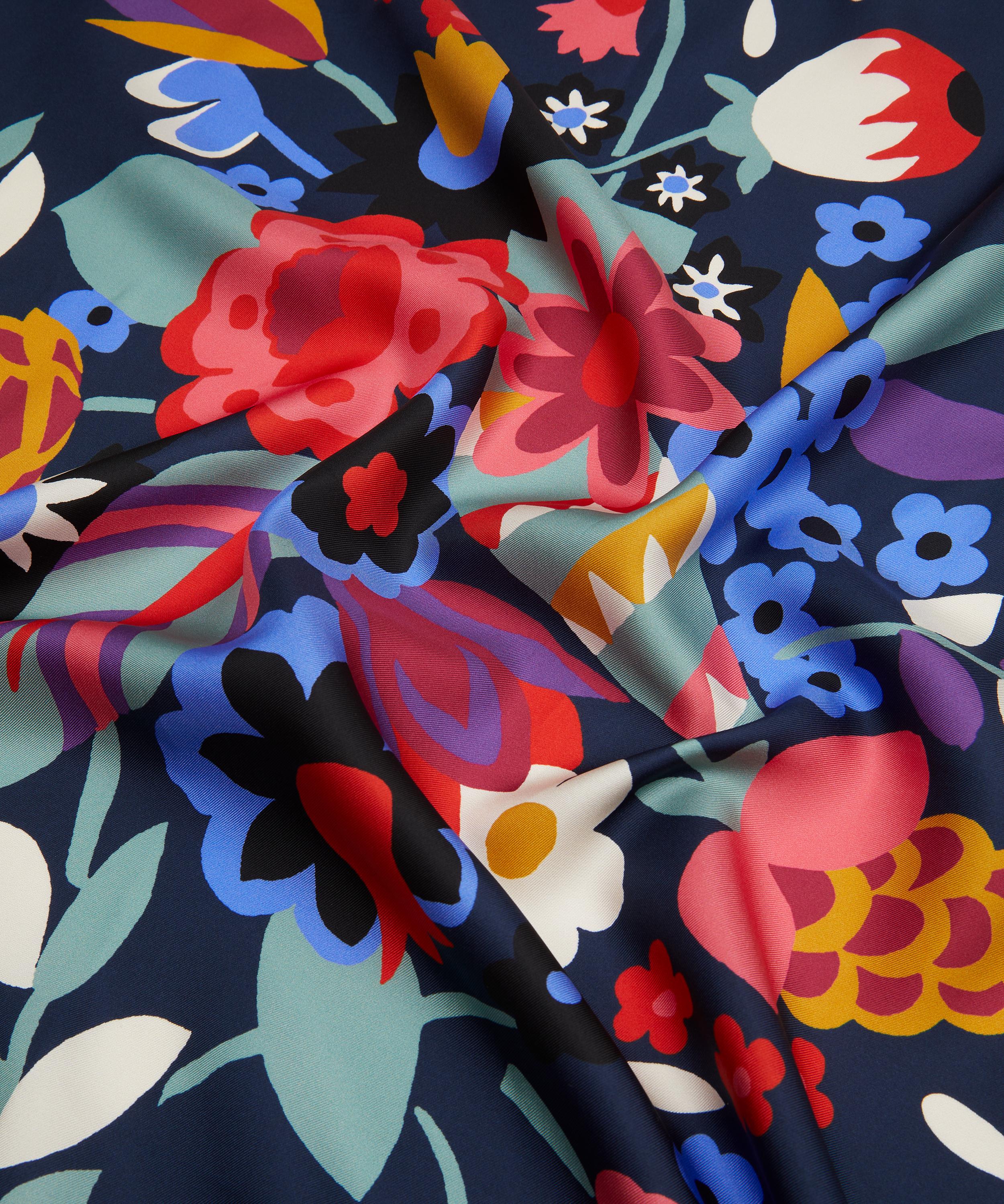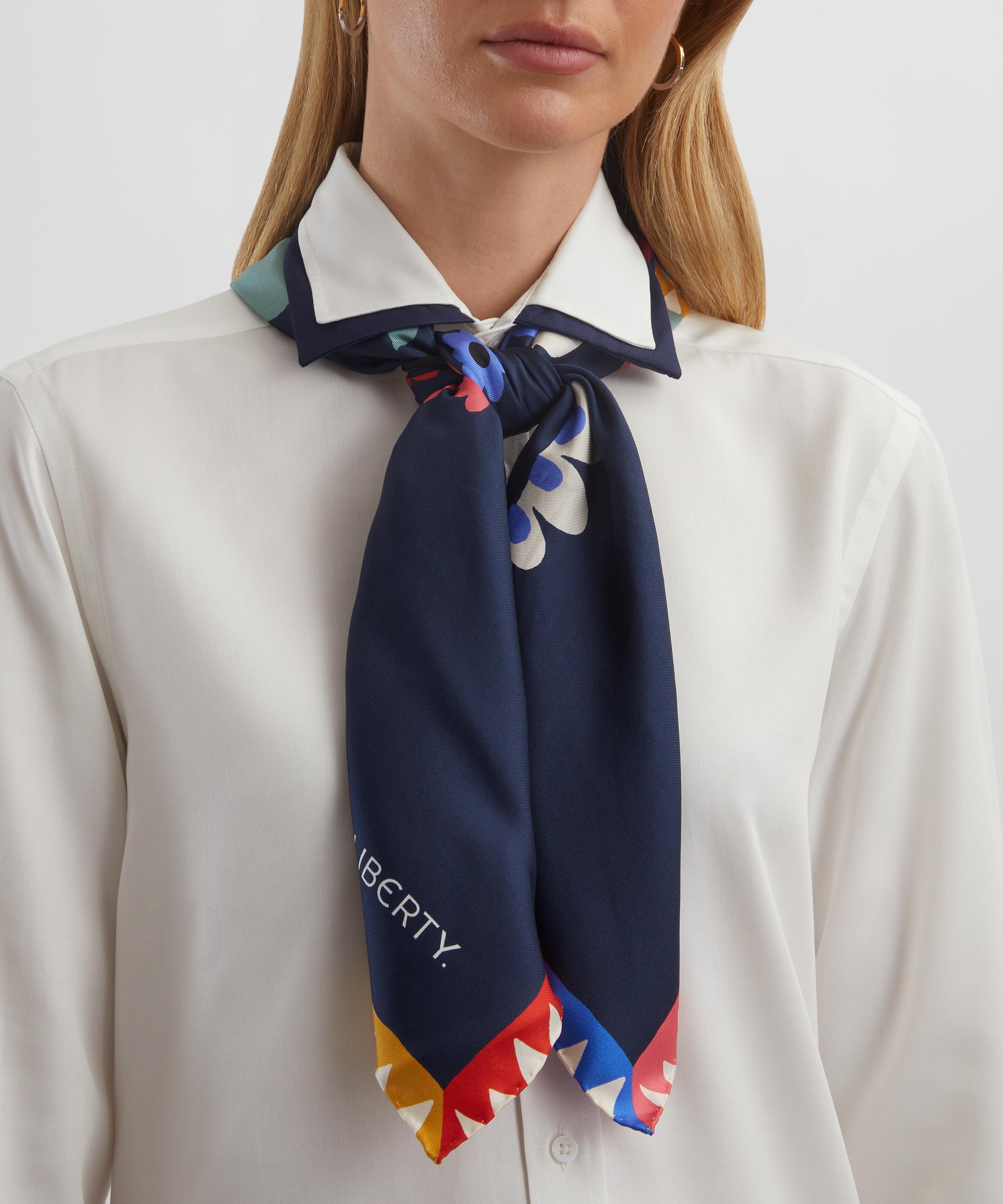 Meticulously crafted in Italy from a luxurious and ultra-soft silk twill fabric with hand-rolled hems, it’s characterised by our showstopping Floral Ballet print – a lively botanical featuring floral elements drawn from a 1966 Liberty scarf design, with a decadent free-spirited mood reminiscent of pop Art Deco patterns. Designed to stand the test of time, this versatile accessory staple will breathe new life into your wardrobe with its rich colouration and texture. Try draping it over neutral outerwear for an elevated finishing touch, knot it close to the neck to lock in warmth, or let it become a chic hair accessory, the possibilities are endless.