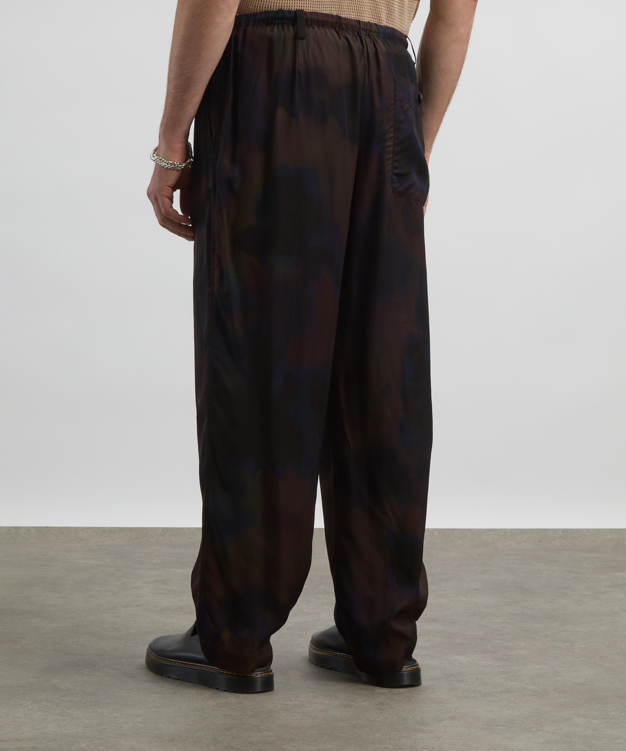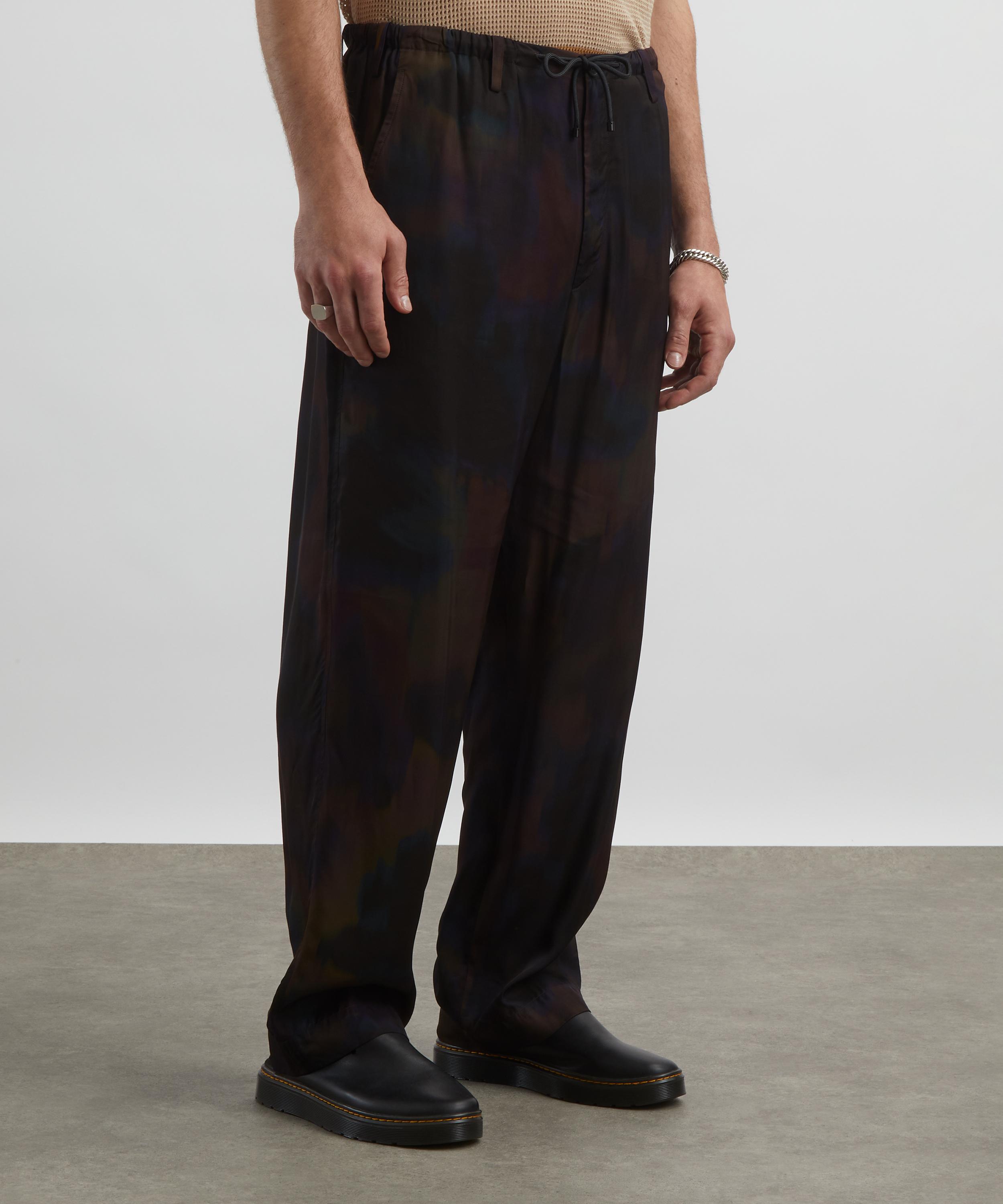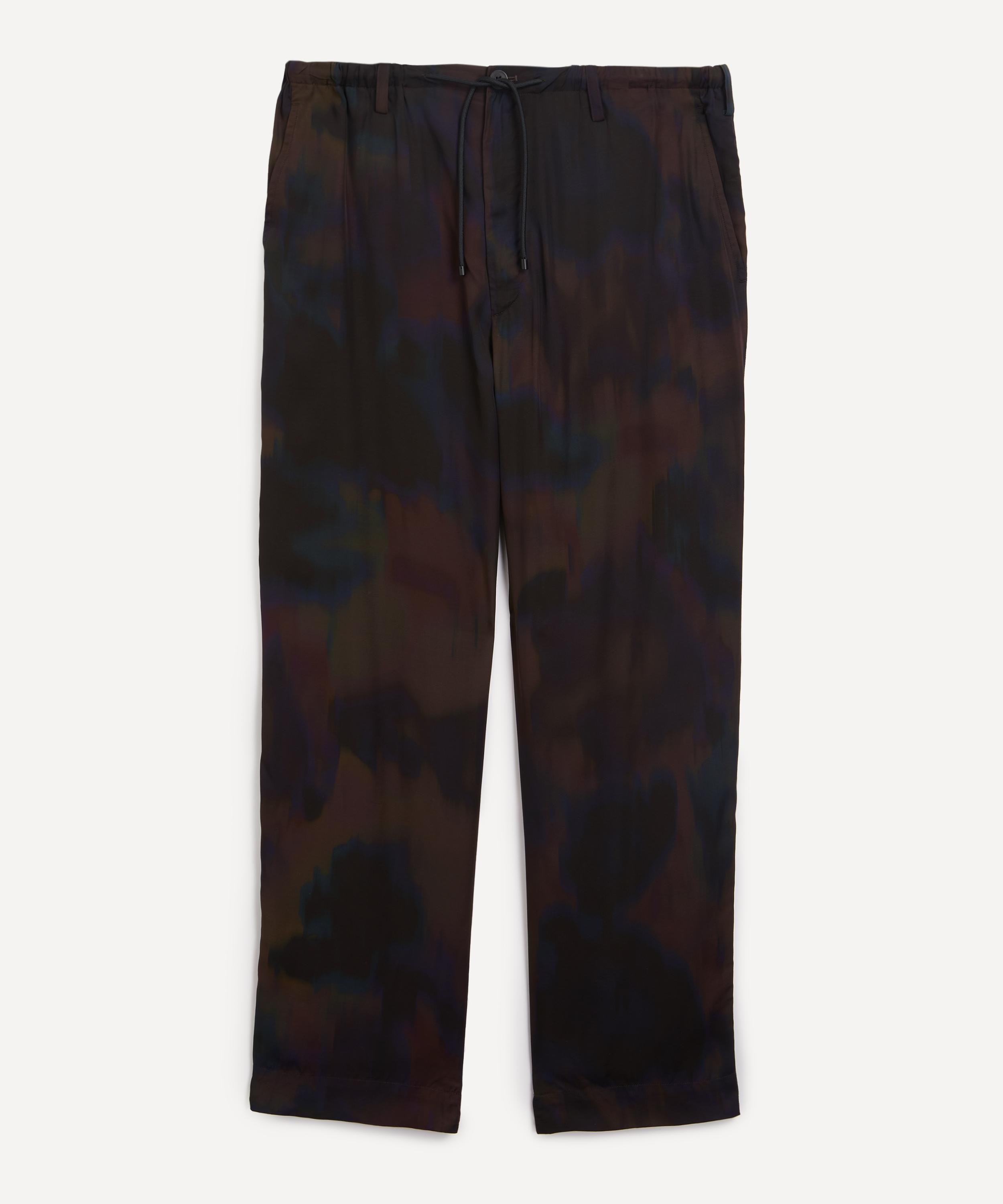 Dries Van Noten's drawstring trousers exemplify the Belgian label’s avant-garde approach to contemporary fashion. Designed for a mid rise, these sleek wide leg trousers feature an overdyed, blurred floral print, and are complete with side pockets, a front button closure and a subtly cropped length for an understated finish.