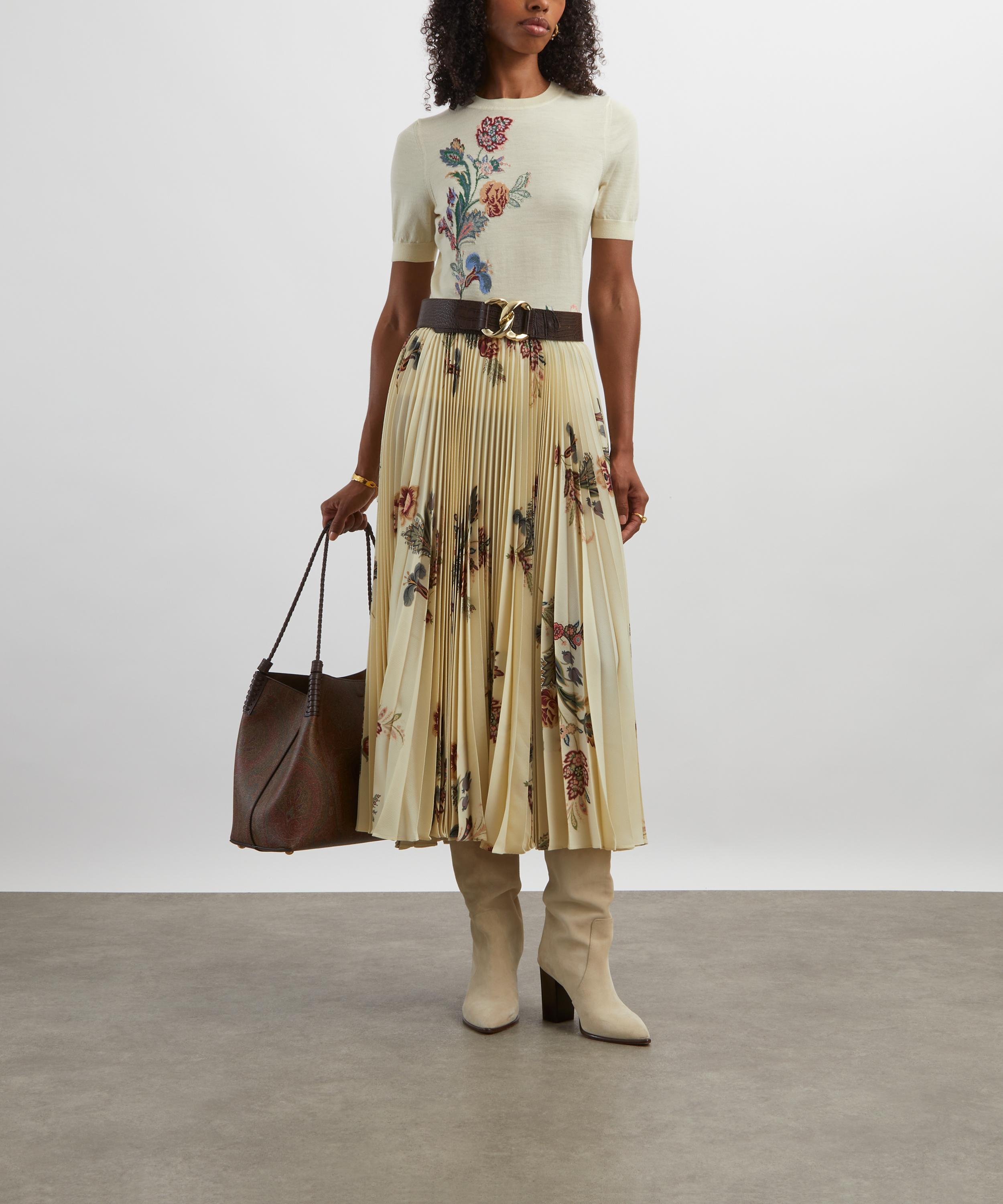 A showcase of Etro’s Italian craftsmanship, the Floral Wool-Blend Jacquard Top captures the brand’s flair for luxurious fabrics and vibrant, Bohemian prints.