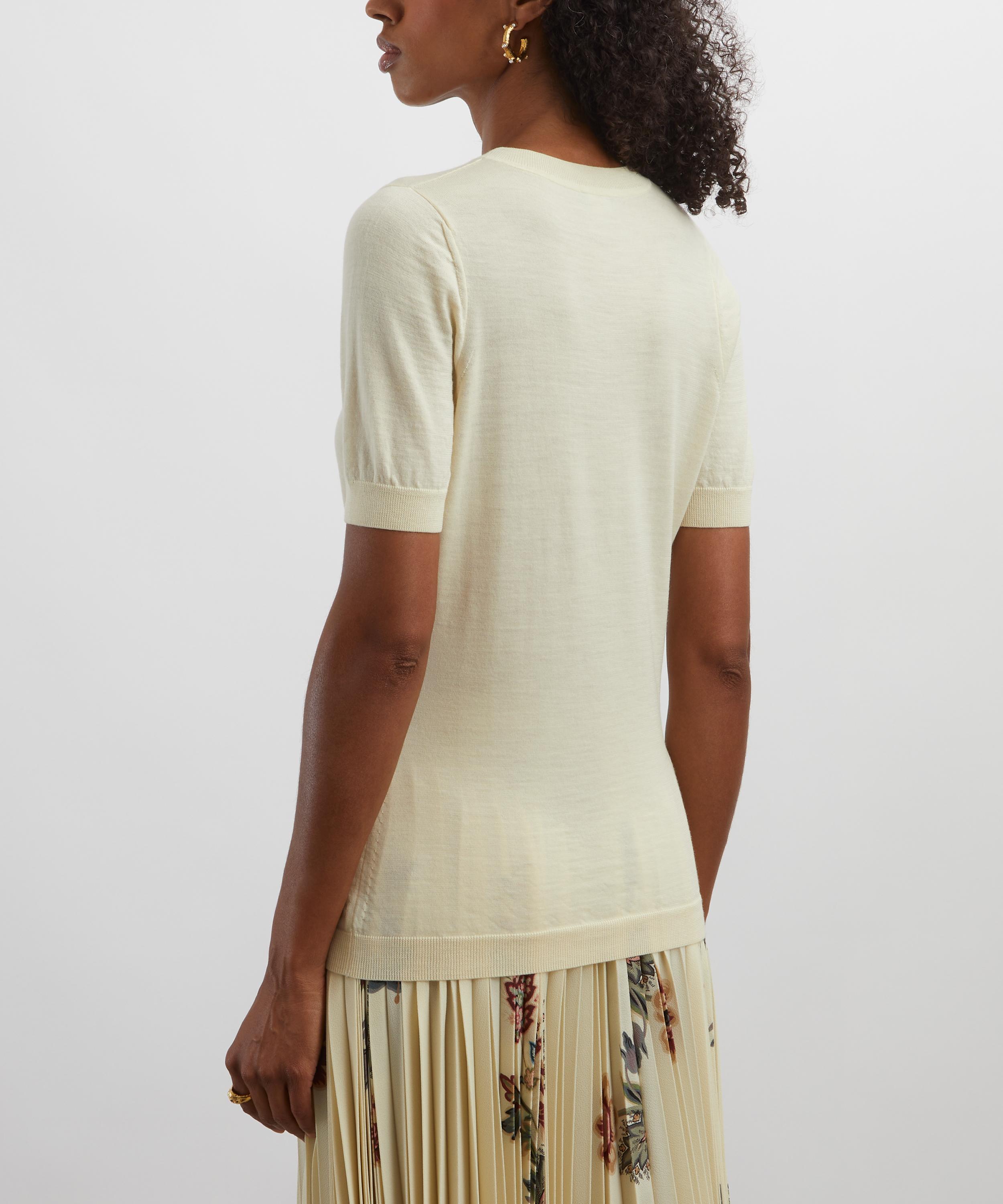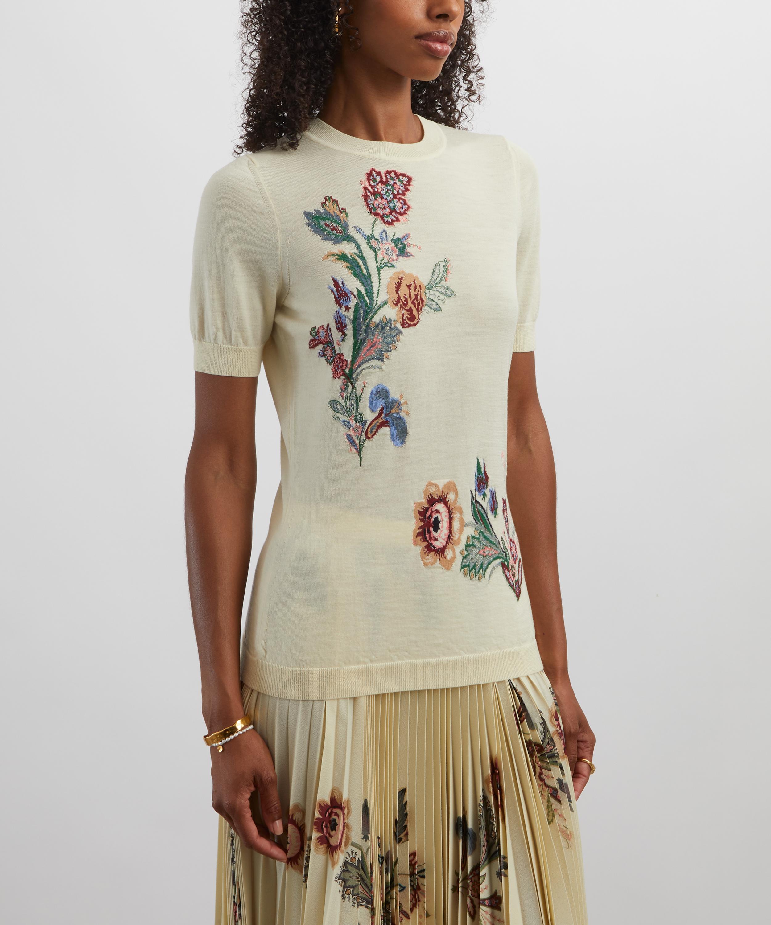 Expertly crafted in Italy from wool-blend jacquard, this fitted, short-sleeve jumper is inlaid with multi-coloured floral motifs - bringing bold texture and refined detail to a sculpted silhouette.