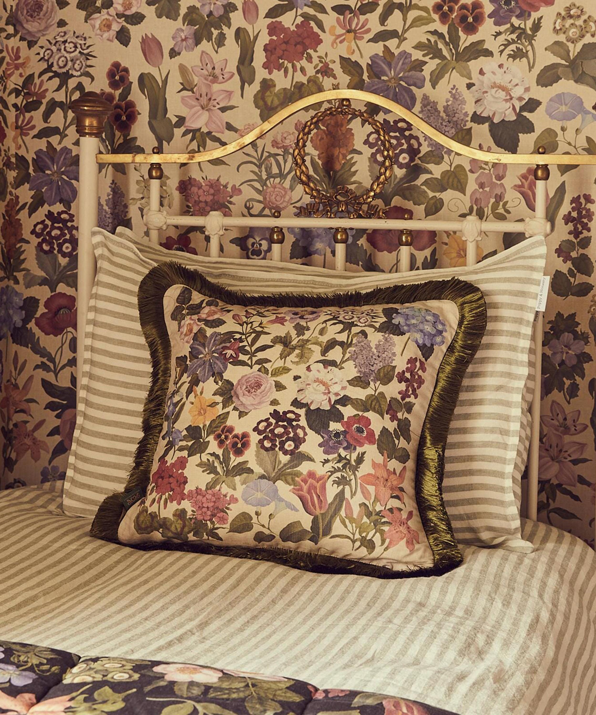 Floralia Medium Fringed Cotton Linen Cushion