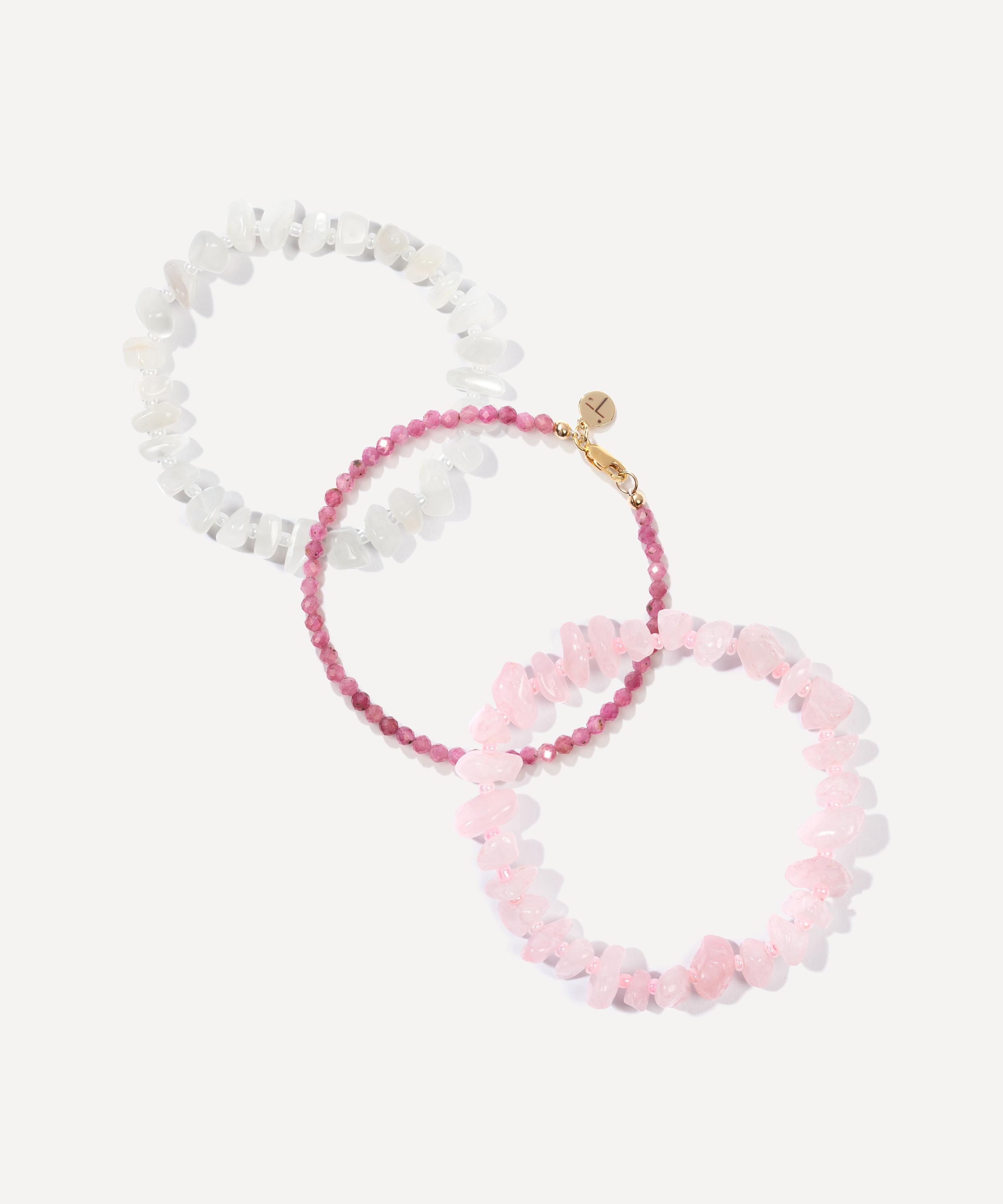- Three Rose Quartz Crystal Bracelets