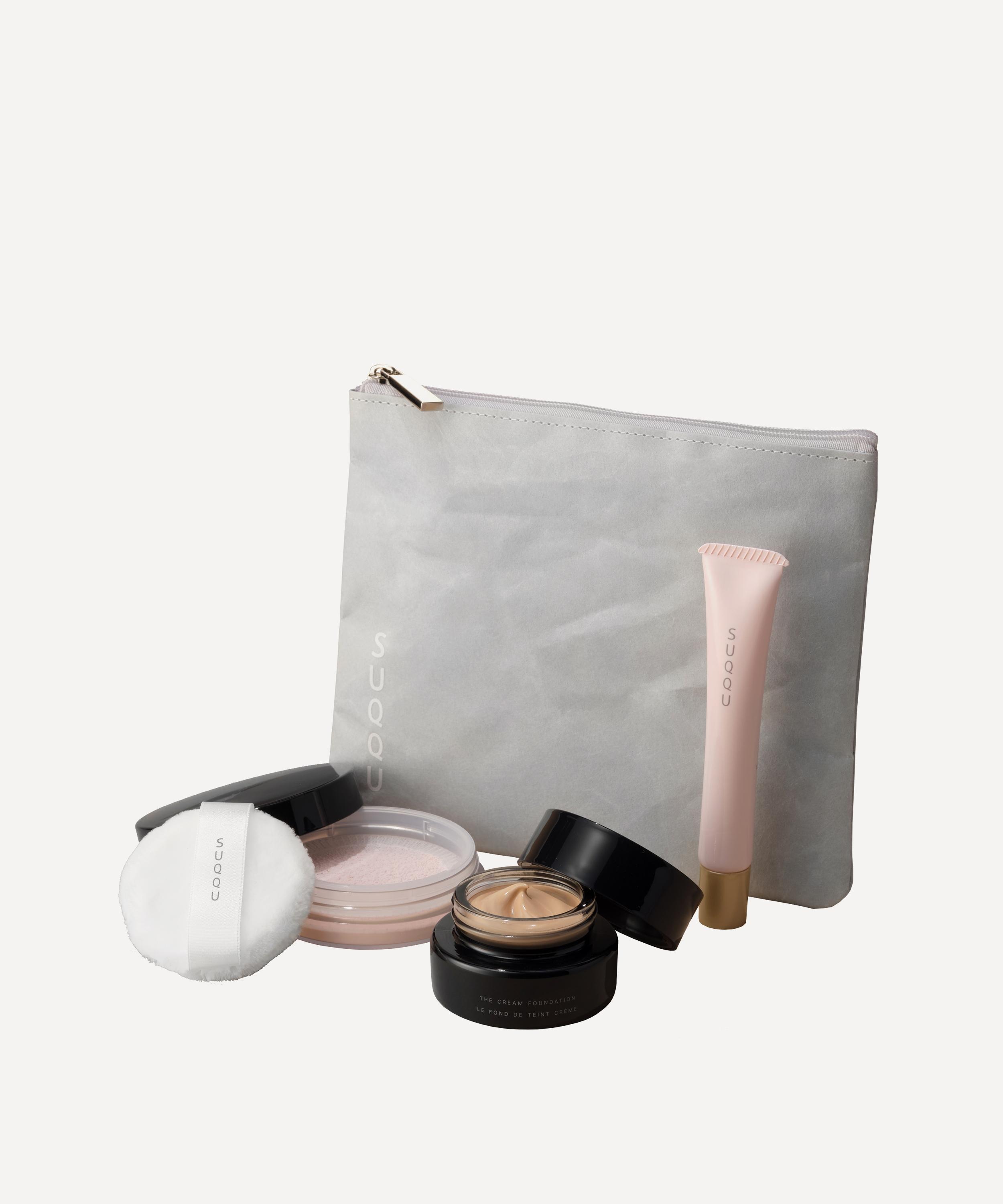 Master the ultimate glass skin look with SUQQU's foundation starter kit - featuring three of the brand's lauded face essentials in travel size to create a flawless base, housed in the brand's original pouch.