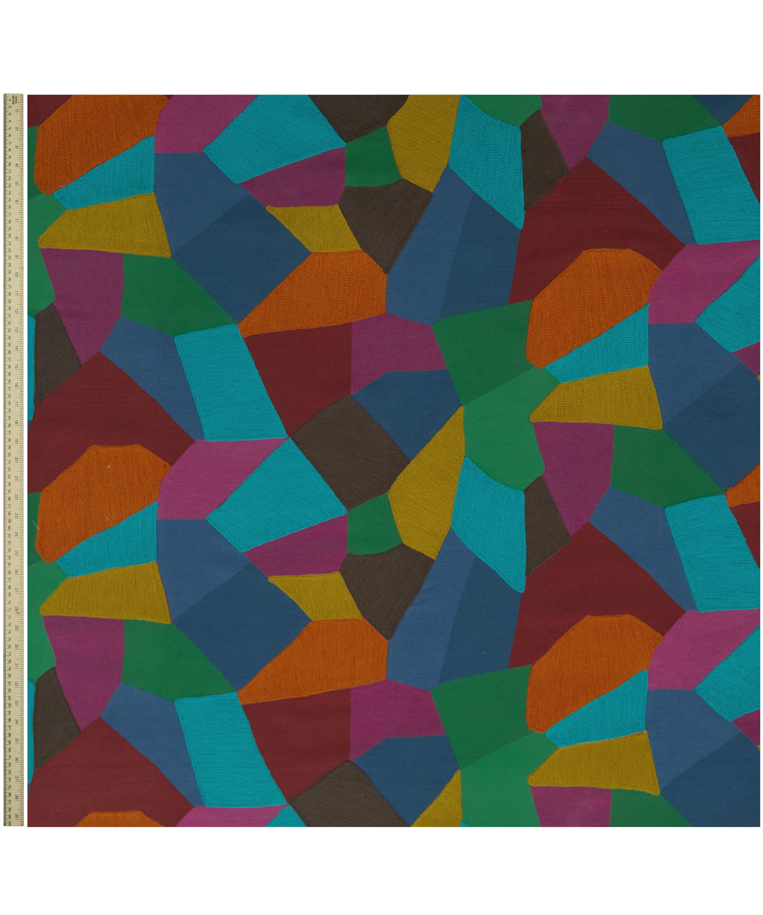 Future Embroidery is inspired by the beautiful geometric fields surrounding interior designer Federico Forquet’s home in Tuscany. The print features a collage of jacquard woven and embroidered shapes, created using a hand-guided machine – ideal for drapery and decorative accessories such as cushions.
