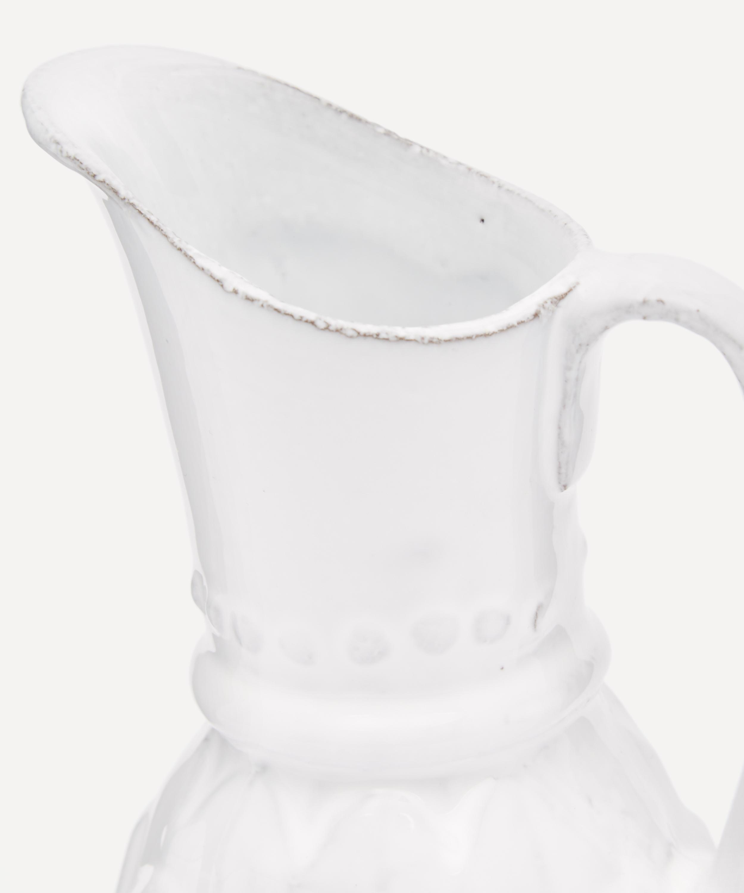 Votary of pre-industrial fabrication, Astier de Villatte is celebrated for being the one and only studio in Paris to hold and harbour the traditions of artisanal ceramic production. Restoring the ancestral systems of moulding and stamping, the Gédéon pitcher is made using techniques from the Middle Ages which involve moulding a sheet of handmade clay, double firing the ‘biscuit’ piece and glazing the product in white enamel – a lengthy process that requires a drying time of up to one month. Characterised by a repeating pattern that resembles the exterior of an artichoke, the pitcher is engraved with the brand’s signature crest - depicting an interlacing A & V - alongside the initials of one of the 40 master artisans who created it. Each handmade piece tells a beautiful story, it romances and imparts a sense of nostalgia into its owner. Arrange with other serveware in the collection to breathe an air of authenticity into your dining collection.