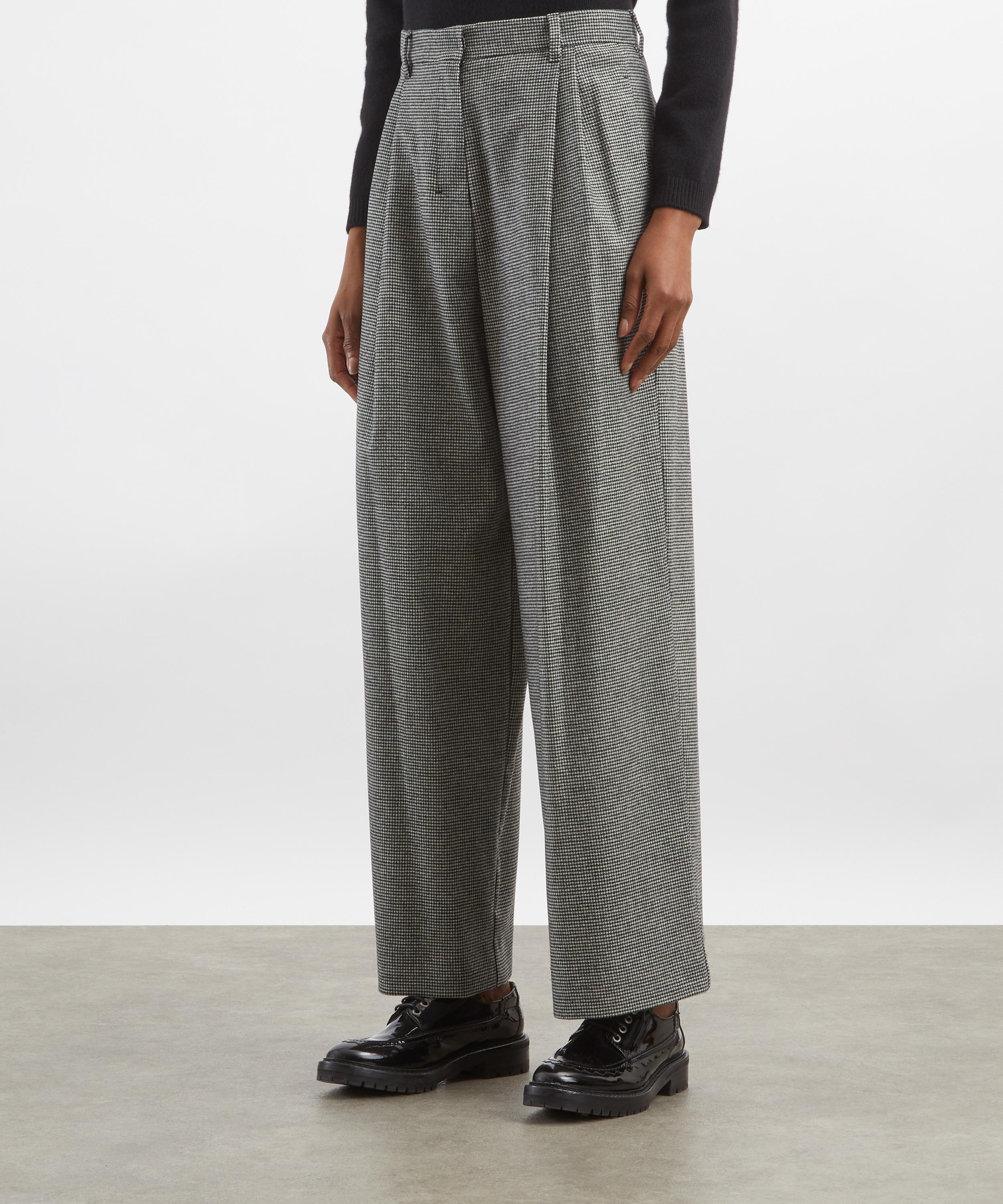 Cut from wool-cashmere Saxony fabric in a classic houndstooth pattern, these trousers feature a wide-leg silhouette with a high-cut waistband, slant side pockets, and pleated double-dart detailing at the front for a polished, tailored finish.