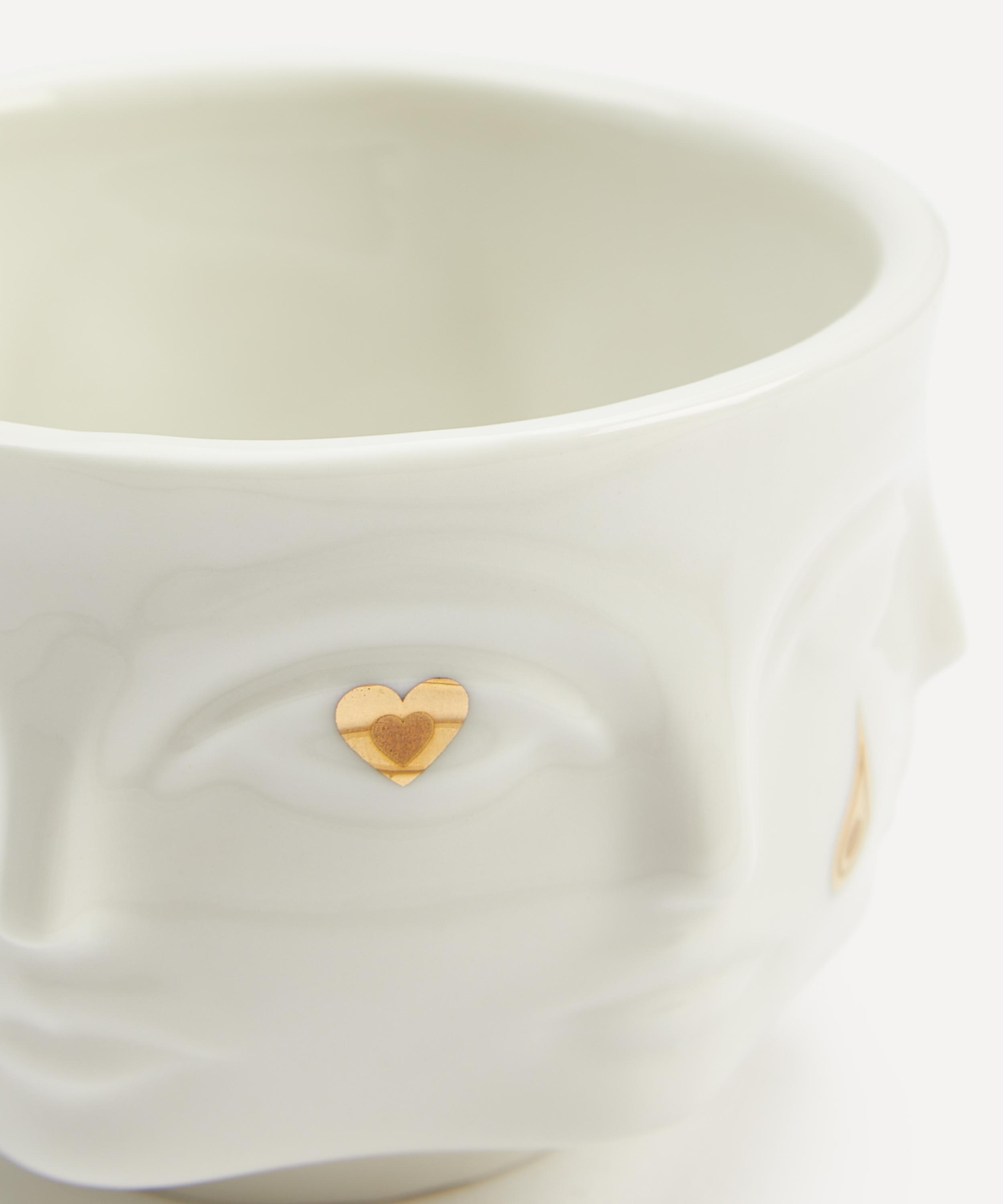 Expertly sculpted from high fired porcelain, this conversational piece is inspired by Dora Maar, the French photographer, poet, and painter also known as Pablo Picasso’s lover and muse. House tea lights, fake eyelashes, olive pits or paper clips in this statement votive – poised to elevate mantles and tablescapes with its artful charm.