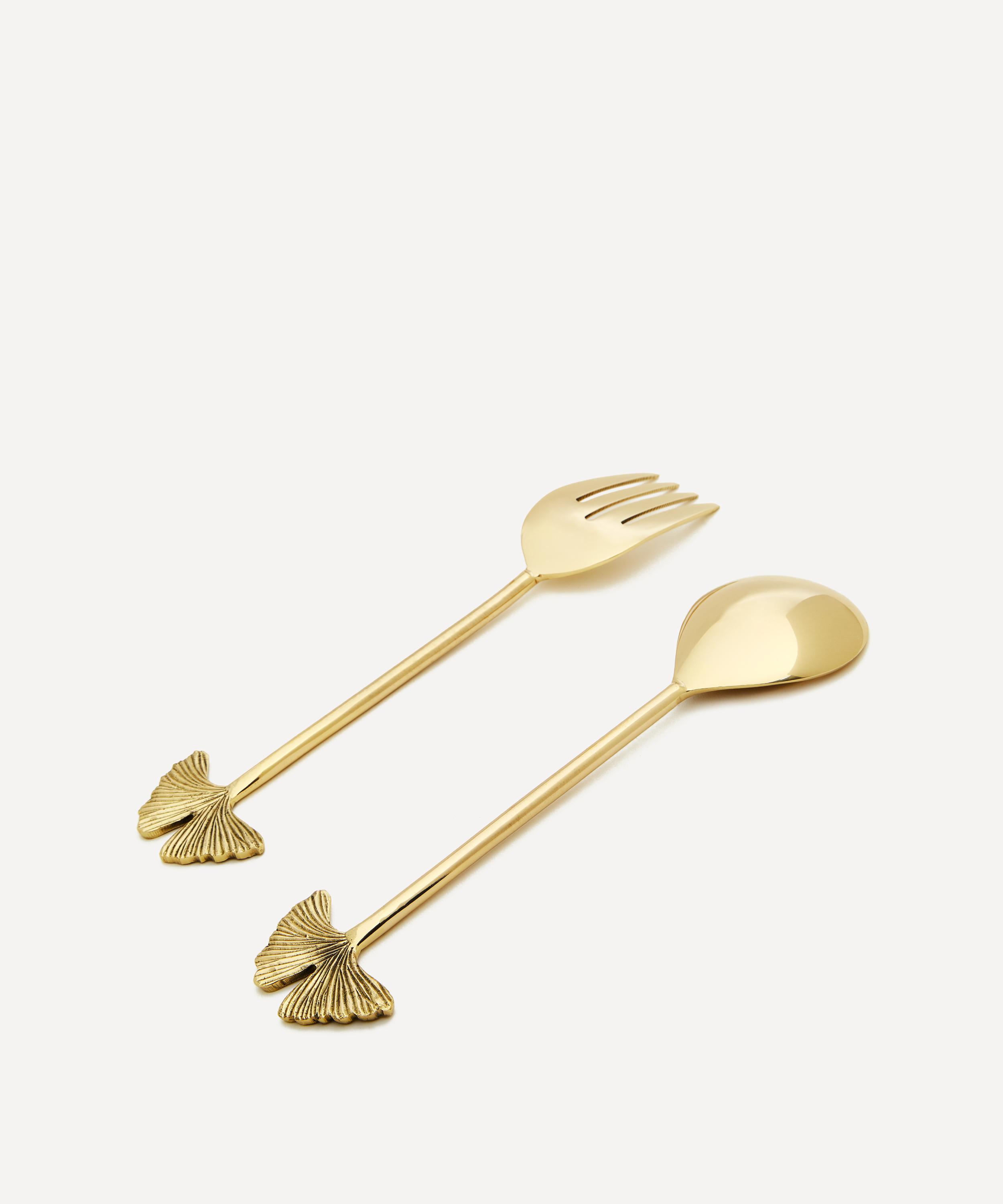 Turn mealtime into an indulgent experience and serve deliciously dressed salads with this set of salad servers from Culinary Concepts. Crafted from brass, this elegant pair of utensils offer a touch of botanical novelty with their decorative gingko leaf motif – use them to transform ordinary occasions to extraordinary moments shared with family and friends.