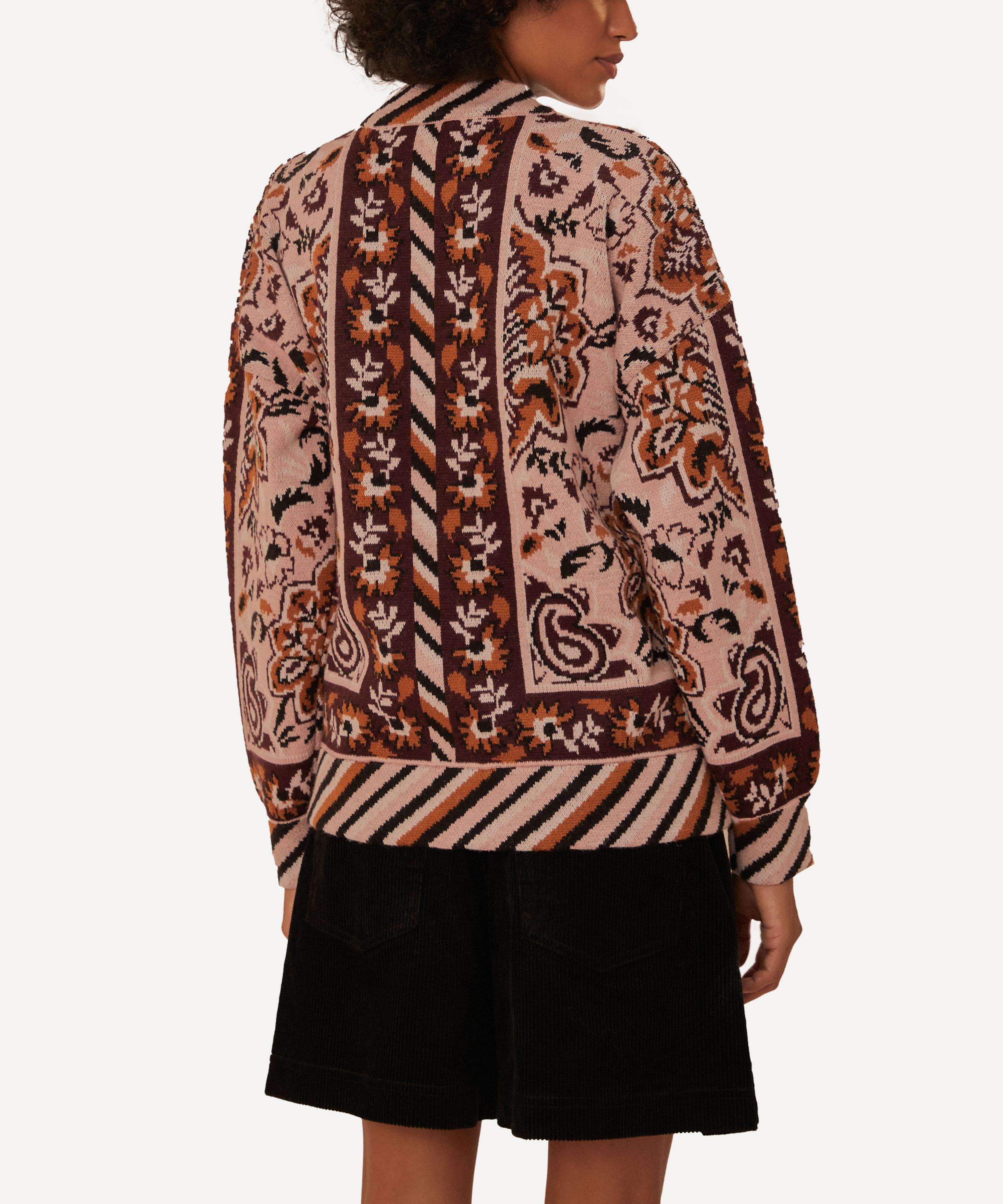 Imbued with a vintage charm, the Glam Tapestry cardigan from Rio de Janeiro-based label FARM Rio is set to take your new season knitwear edit to new heights.