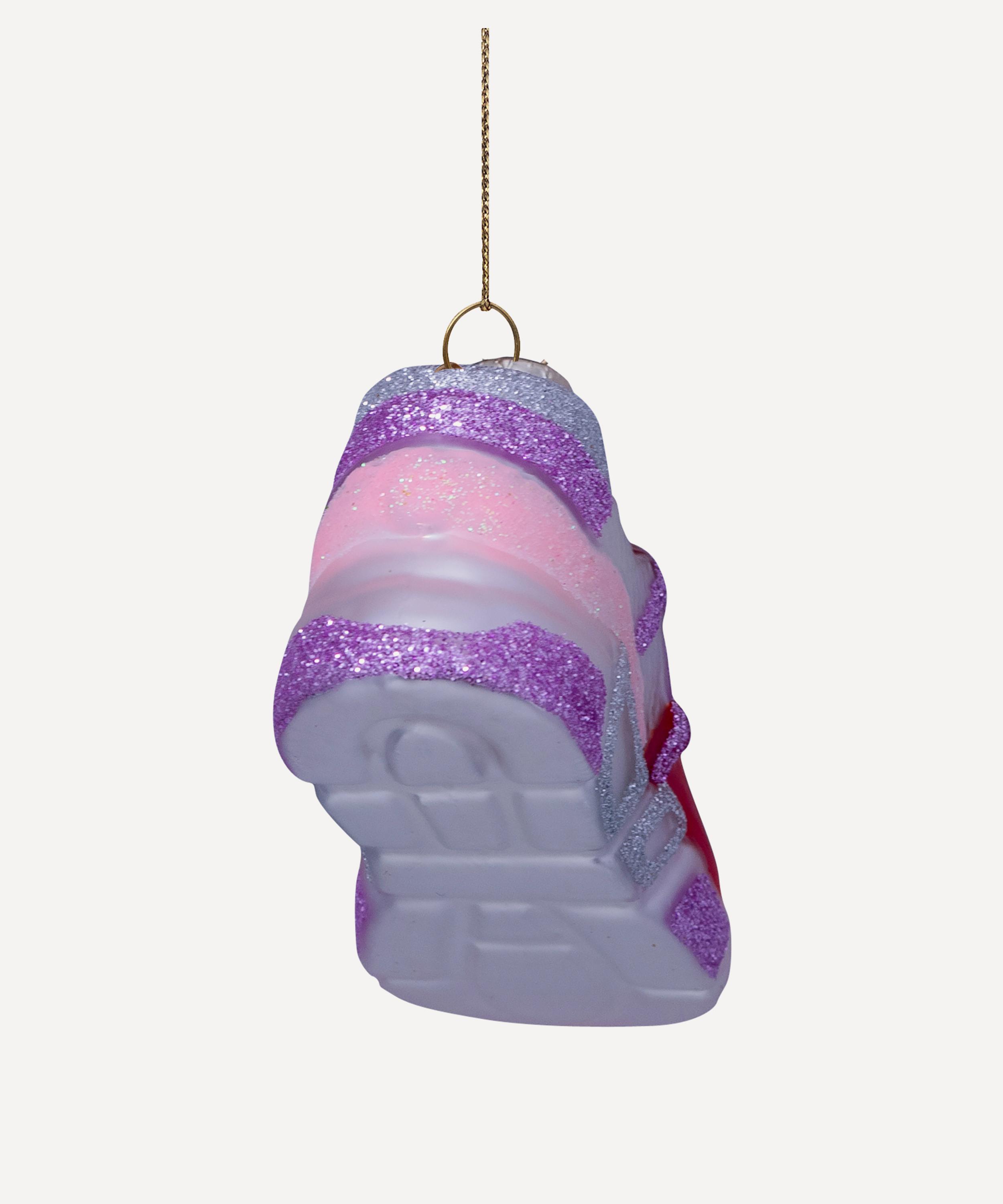 Adorned with eye-catching glitter detailing, this playful hand-painted ornament will take pride of place in any sneaker aficionado’s bauble collection.
