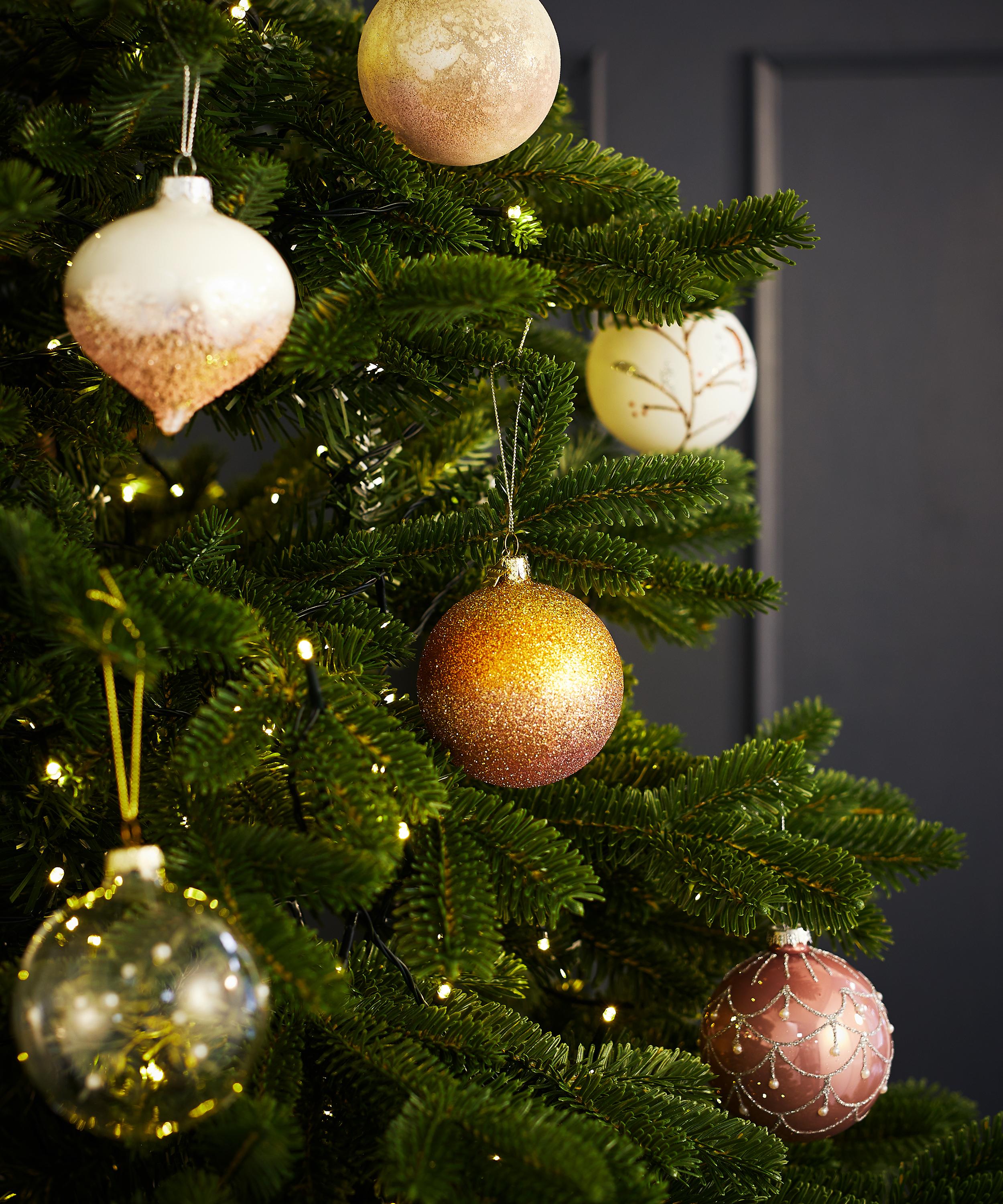 Designed in a classic spherical form, this beautiful bauble is embellished with fine glitter for a modern ombre effect. An eye-catching ornament to adorn your tree with year after year.
