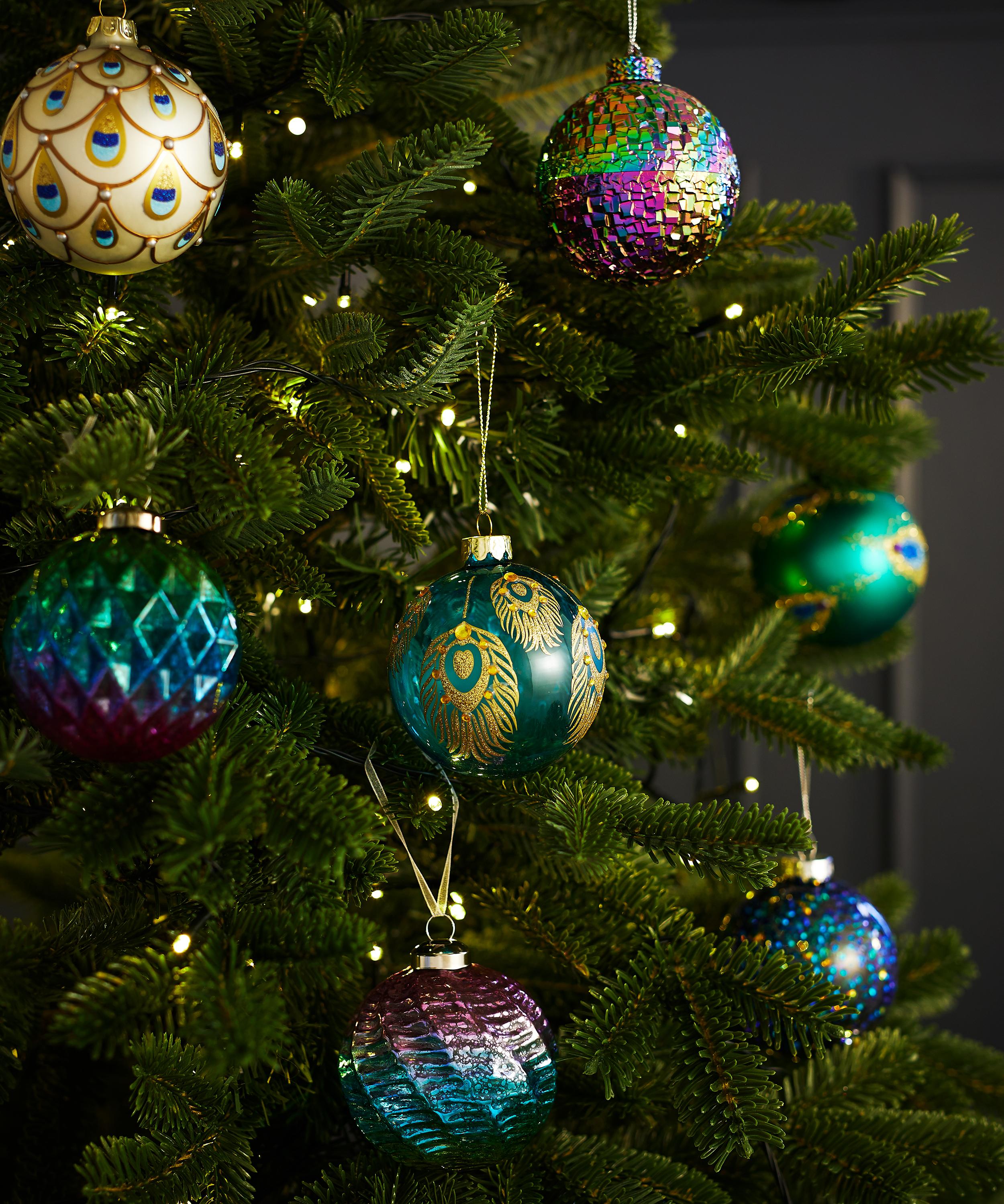 Keep your tree shimmering bright with this peacock feather bauble – a charming slice of Christmas spirit.