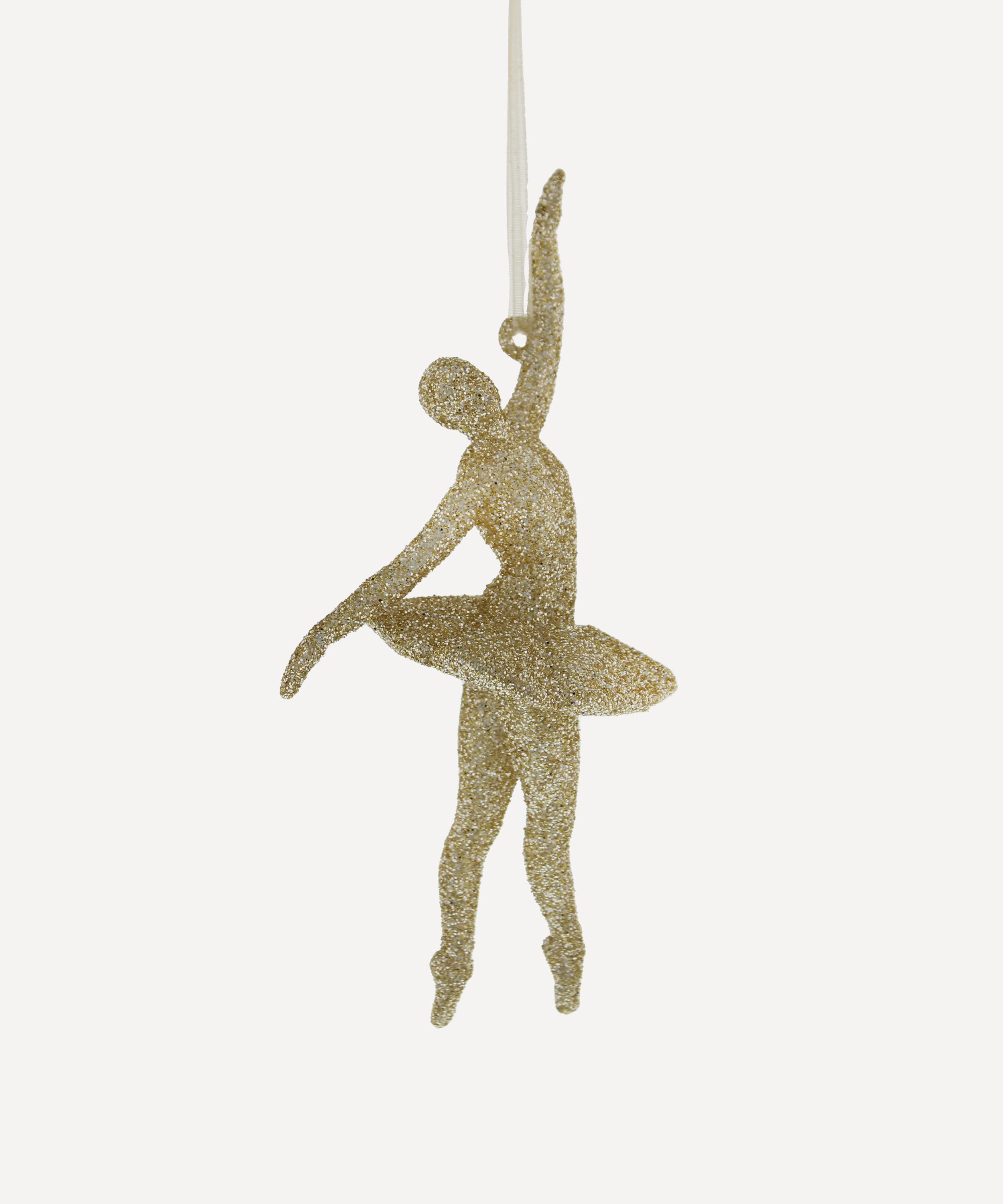 Add a flutter of grace to your evergreen pine this season with the Glitter Ballerina ornament, exuding whimsical charm with a touch of opulence through its glittering gold details.