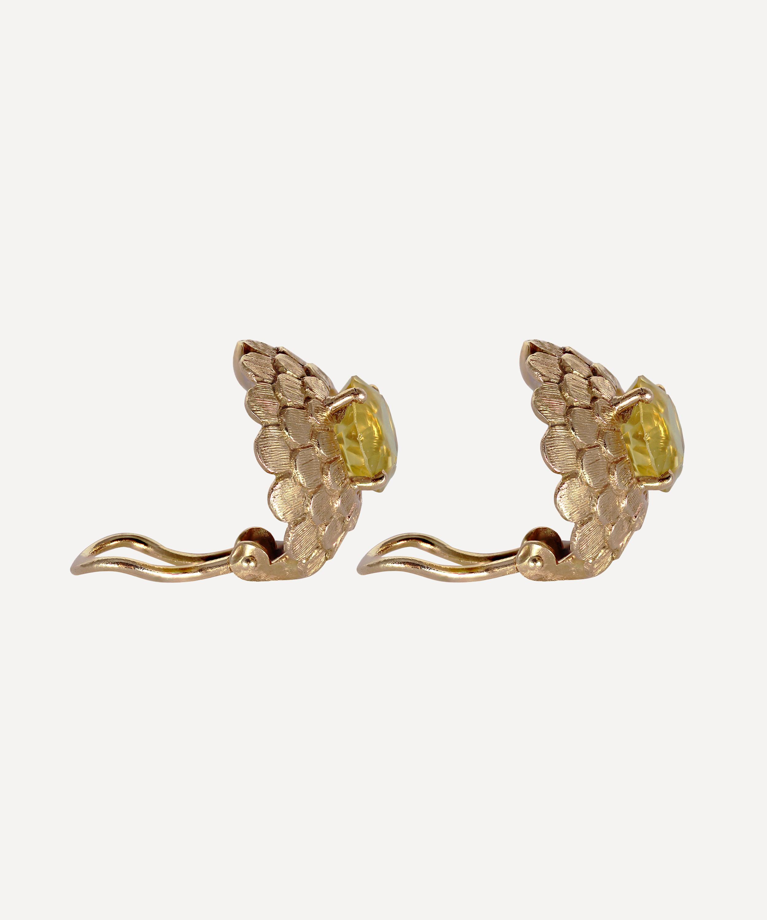 Dating back to the 1960s, these vintage gold clip-on earrings from antique purveyor Kojis are studded with glittering yellow citrines.