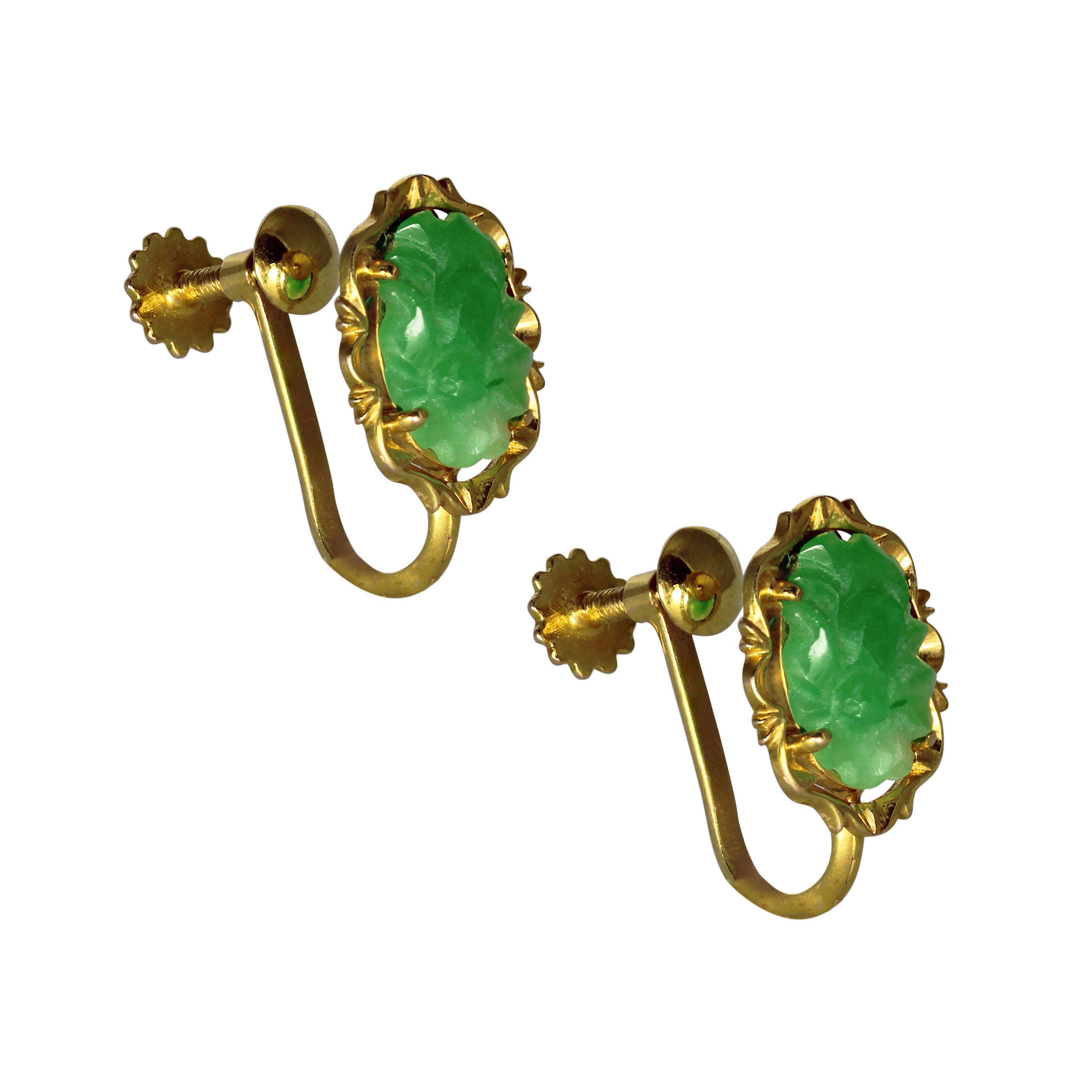 Dating back to the 1960s, these gold screw-back earrings from antique purveyor Kojis are set with vivid green jade plaques.