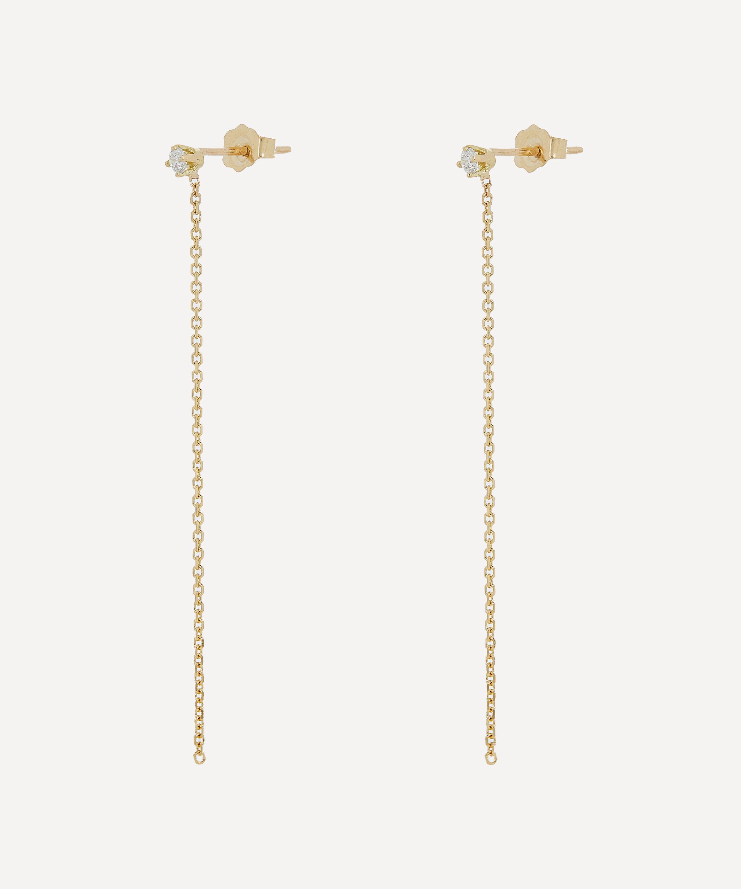The Celestial diamond chain drop earrings are a subtly sparkling pair from Satomi Kawakita - the namesake fine jewellery label founded by New York-based designer and master diamond-setter Satomi Kawakita. Crafted from 18ct gold, each earring showcases a single white diamond stud that descends into a lengthy trace chain drop - a barely-there design that shifts and glitters as you move. The epitome of timeless elegance, they style beautifully alone or clustered with an assortment of understated gold studs.