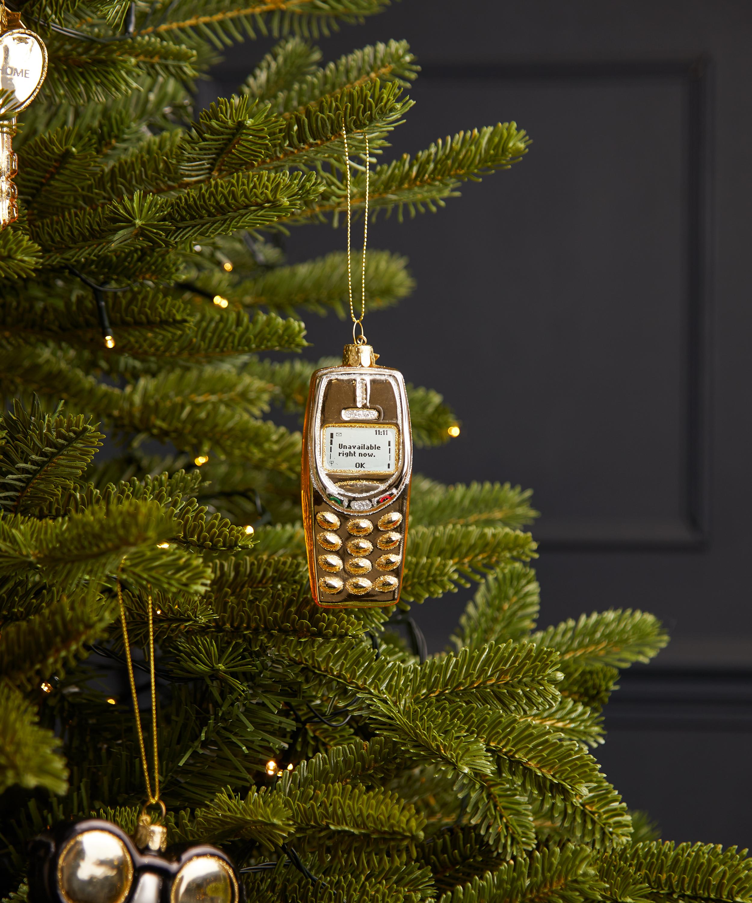 A modern twist on traditional seasonal décor, it’s expertly crafted from glass and showcases a gleaming gold cell phone. Pair it with your classic and modern baubles and trinkets to lend playfulness to this year’s tree or mix and match it with other novelty trinkets to bring smiles to the faces of friends and family alike.