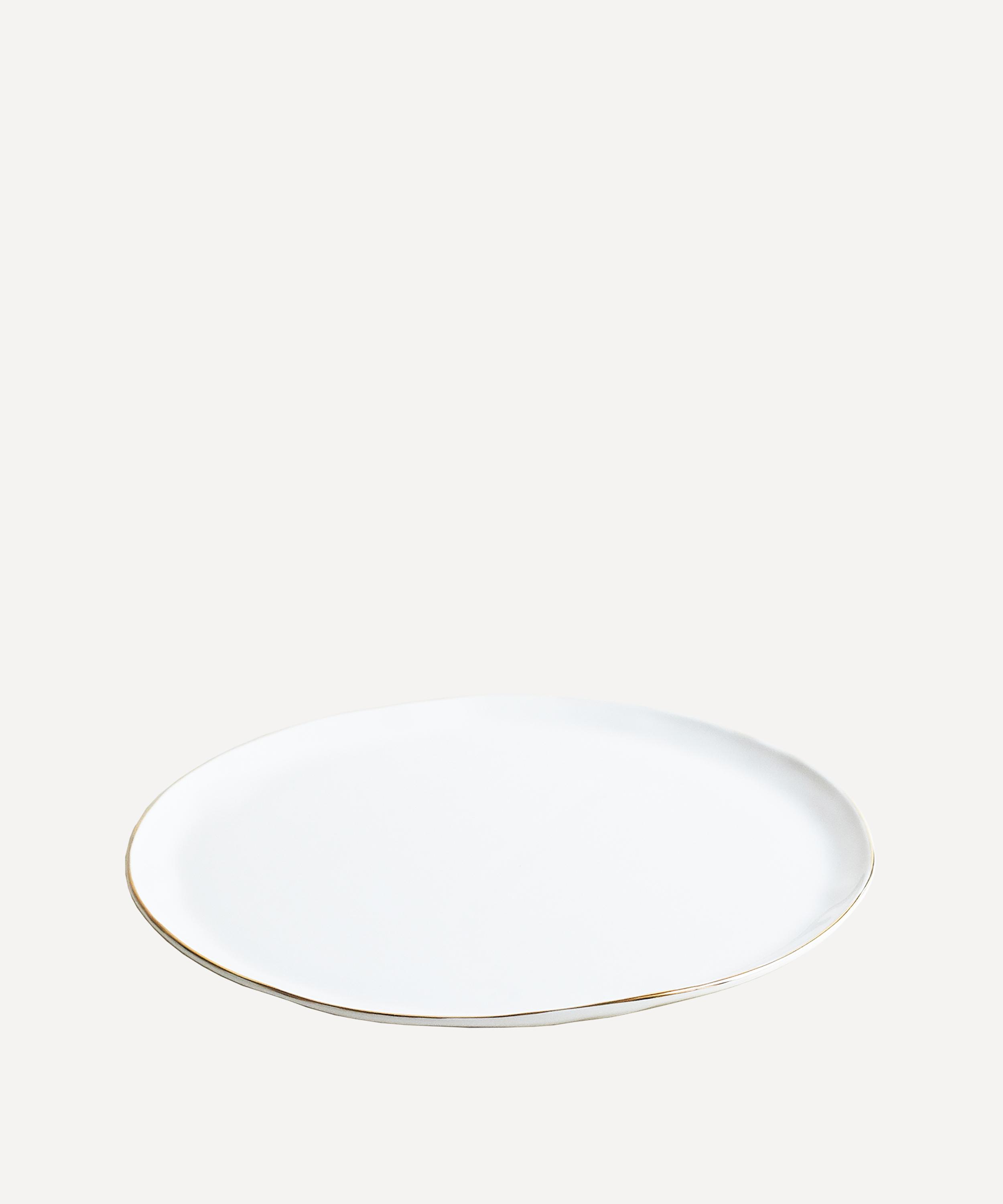 A simple, timeless design, they feature a shallow dimpled lip to catch dressings and sauces, and are complete with hand-painted 24ct gold banding for a luxurious and elevated finish – these elegant plates will add an artisan touch to your dinner party table spread.