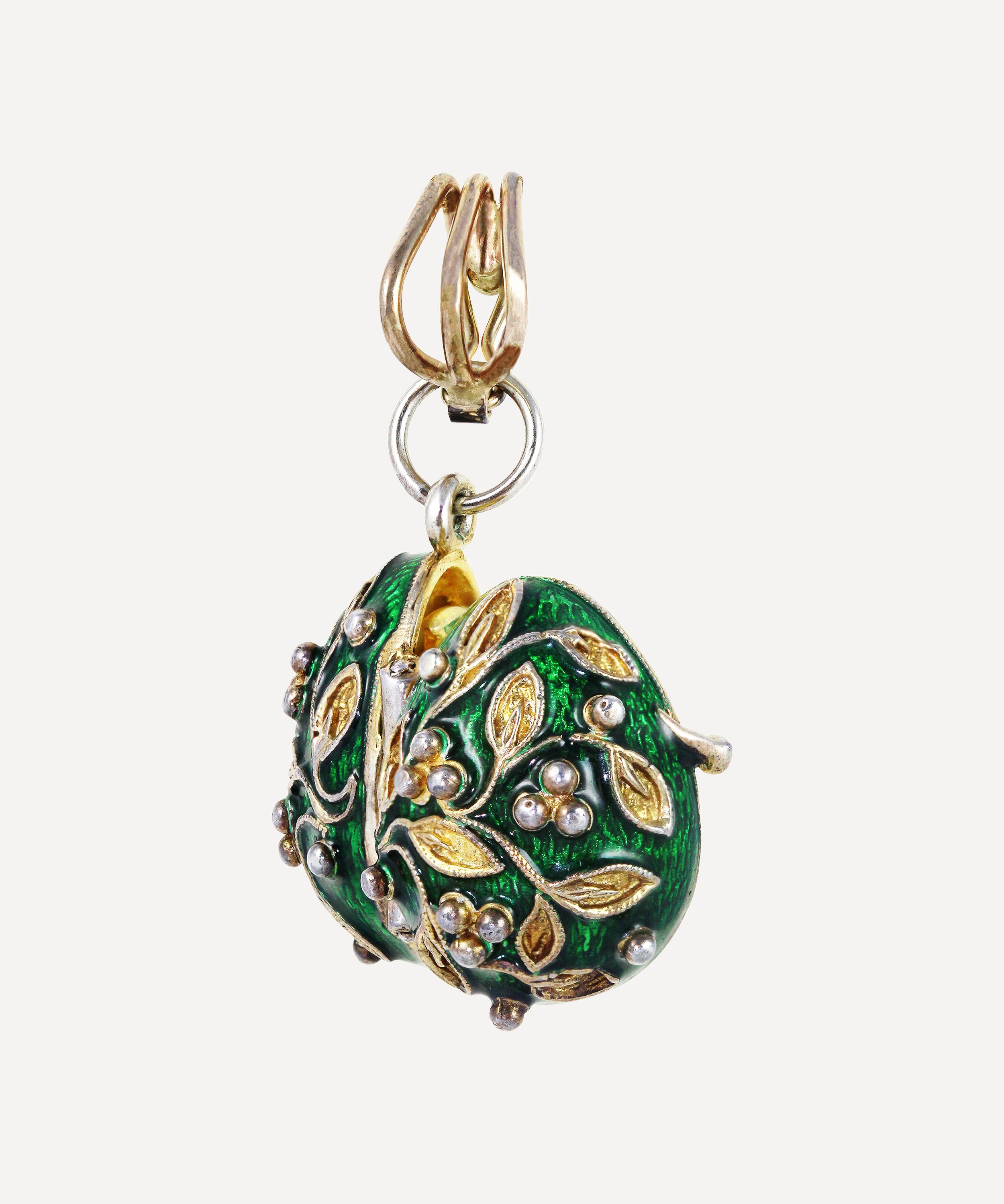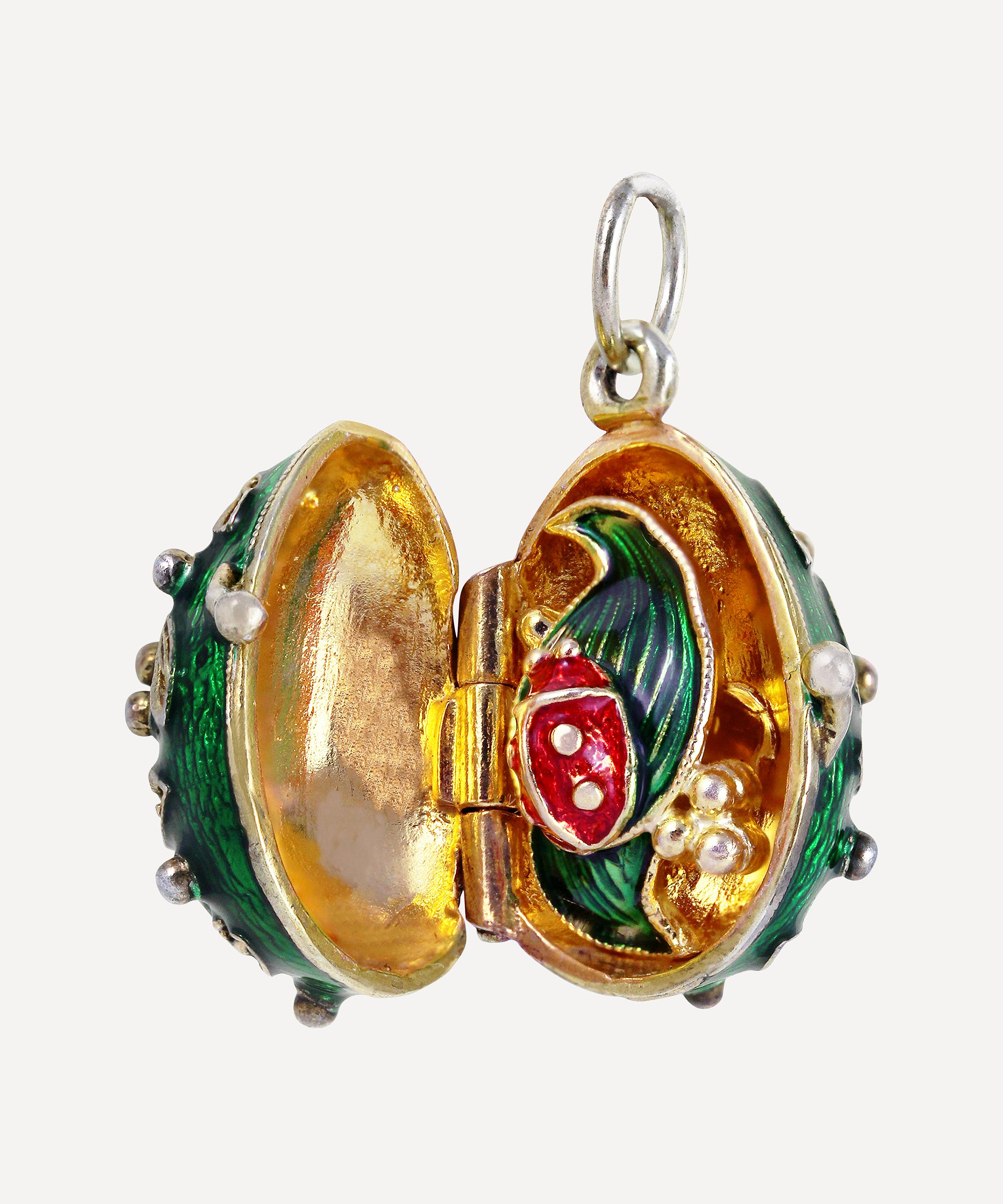 This enamelled egg locket pendant is a signature vintage piece from antique purveyor Kojis.