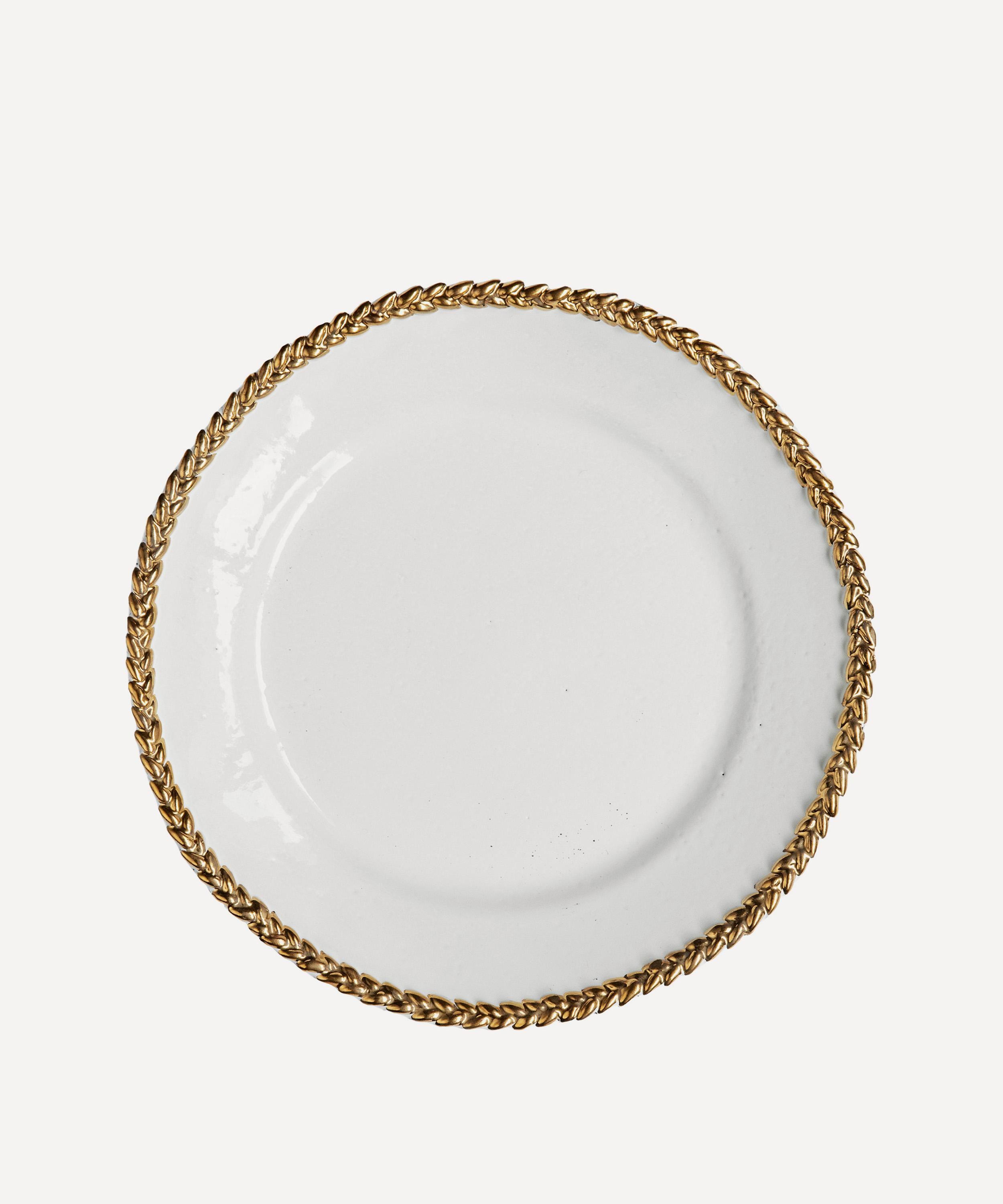 The Gold Josephine dinner plate from Astier de Villatte is a testament to the Parisian brand’s spiritual ethos and fascination with folk art and abandoned objects.