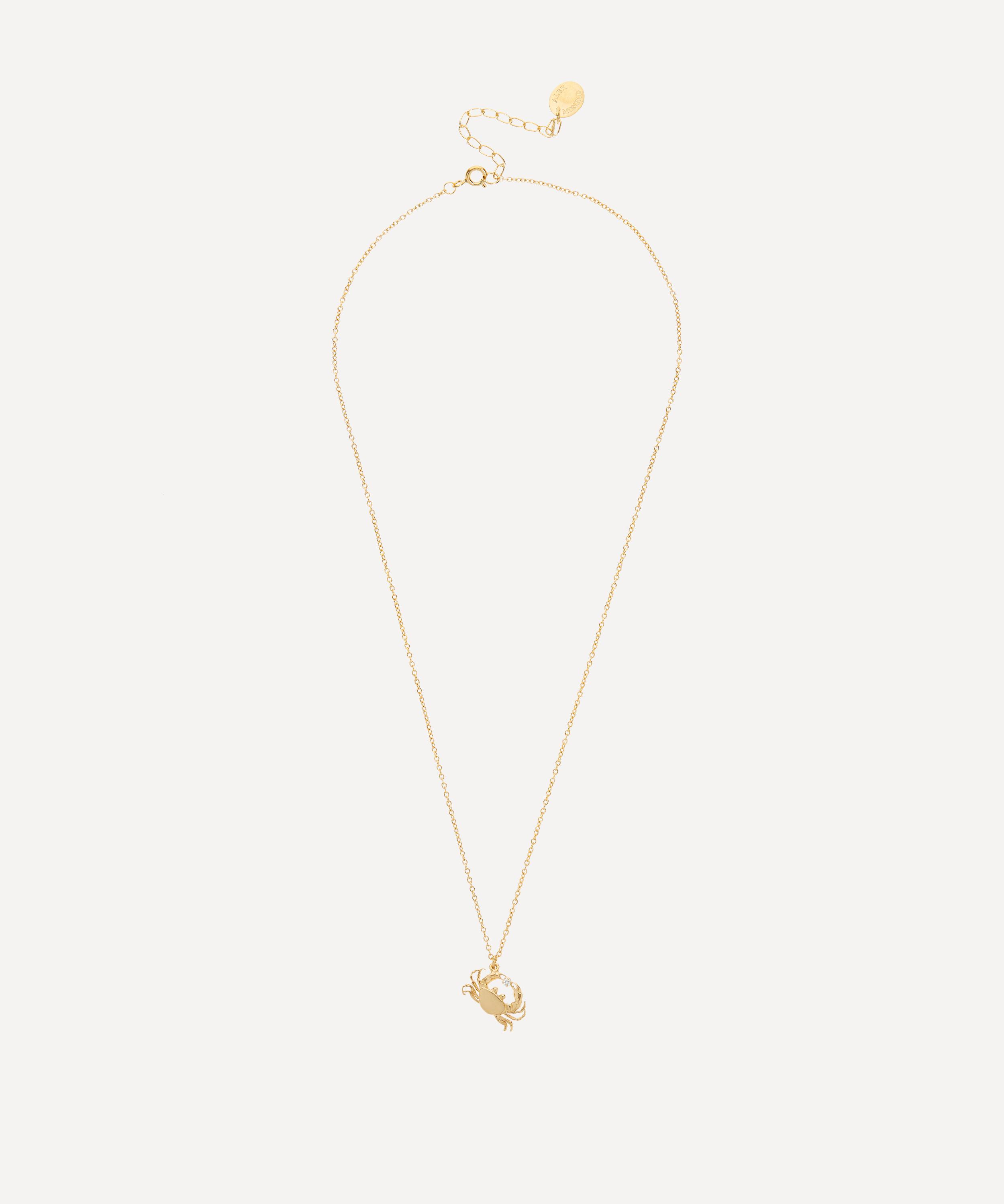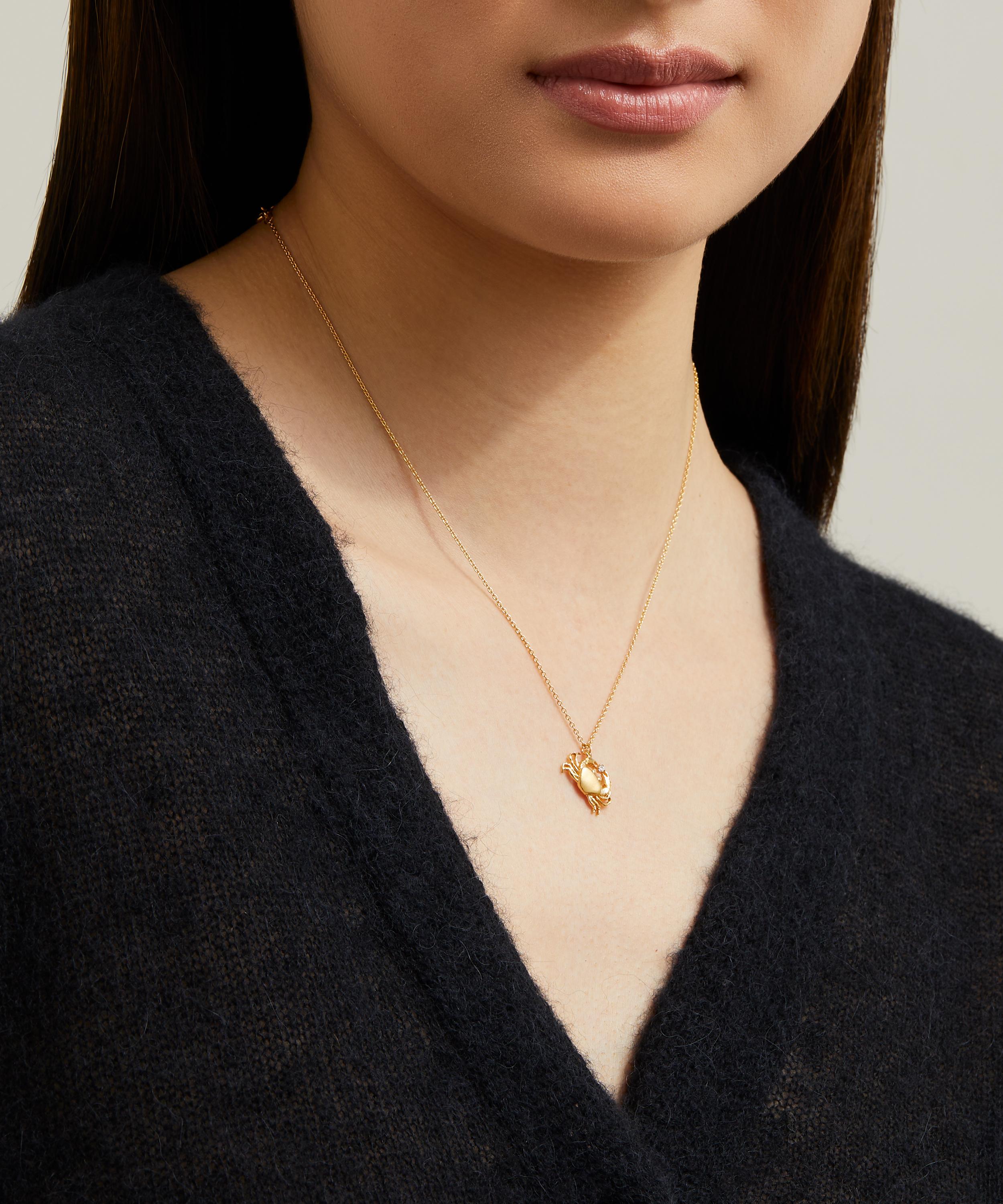 Alex Monroe's Cheeky Crab pendant necklace showcases the designer's affinity for natural motifs. Handcrafted in the brand's London studio from gold-plated silver, this delicately sculpted pendant takes the form of a small crab, clasping a sparkling diamond. Suspended from a fine chain, mix and match this piece with other natural motifs from the brand's collections for a wearable representation of the elegance and delicacy of the natural world.