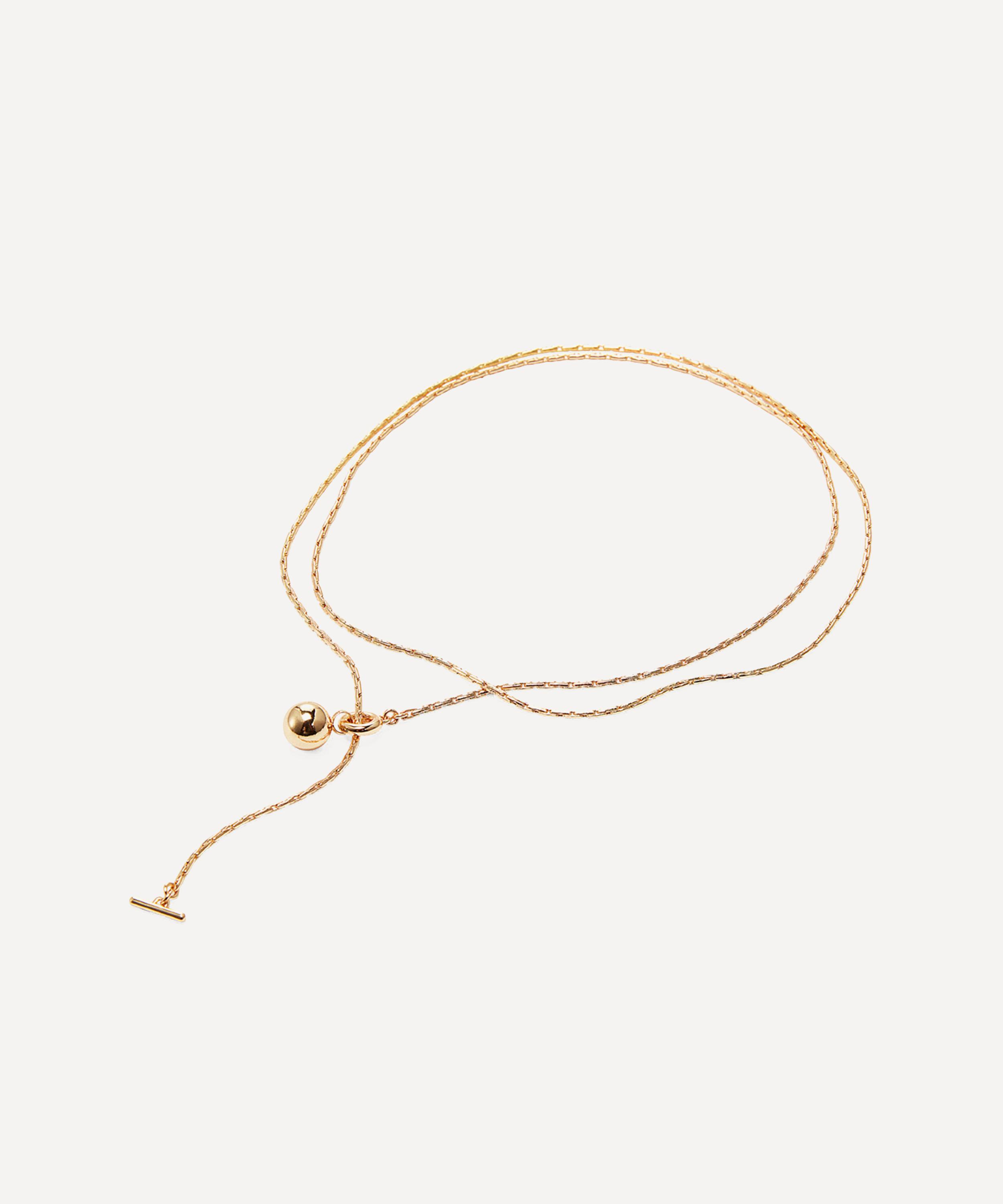 Celebrate the power of good style and the art of getting dressed with the Constance wrap necklace from JENNY BIRD. Fashioned into a round, elongated link chain in gold-plated brass, the design is complete with dropped ball charm in a high-polished finish. Fashionable and ultra-versatile, it can be worn fully extended, double wrapped, as a lariat necklace or bracelet.