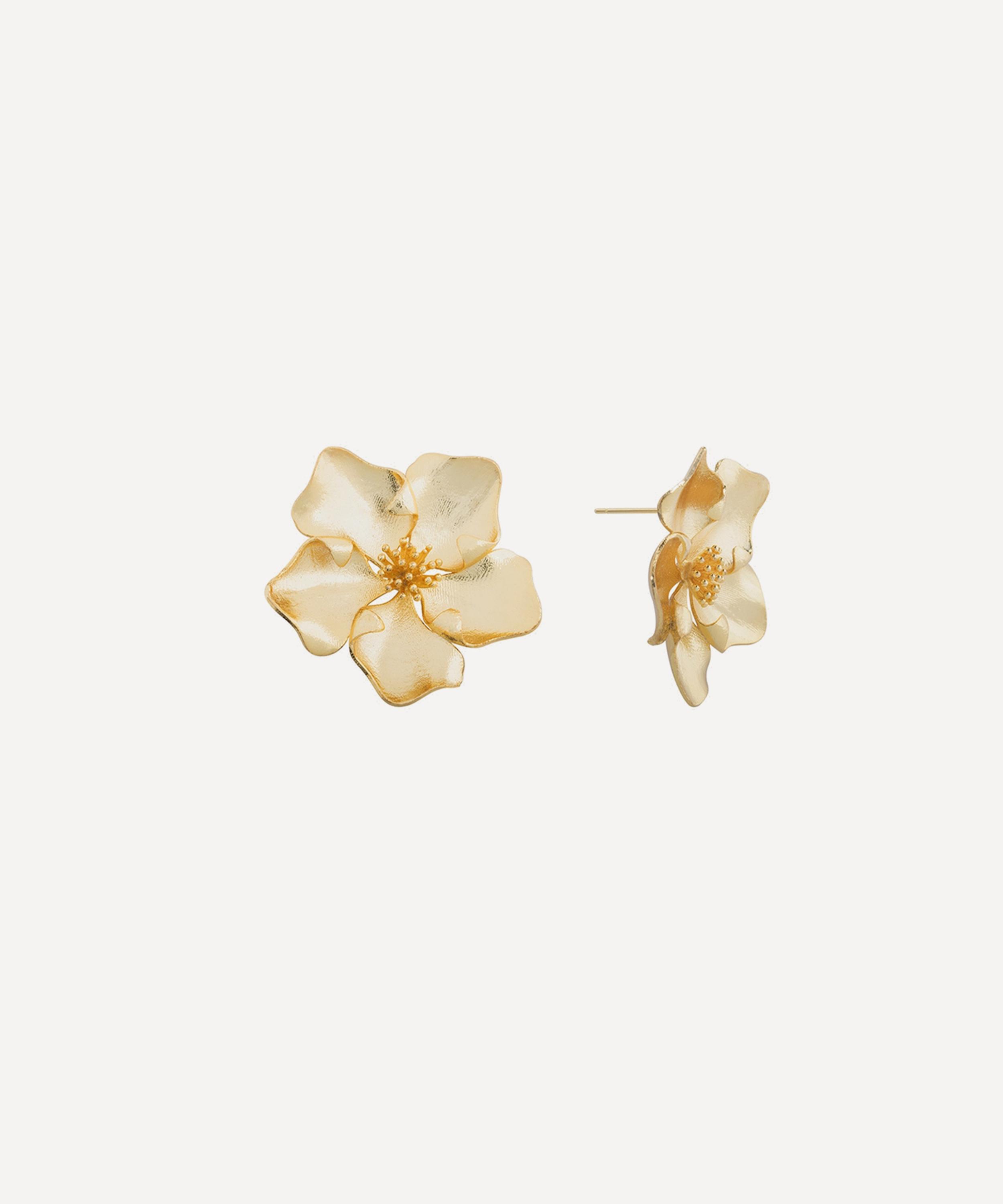 Bold and effortlessly stylish, liven up your attire with SHASHI’s statement-making Iys stud earrings. Crafted in a polished gold-plating, this pair reimagines the beauty of nature in sculptural form, as each stud takes the shape of an ornate floral motif that will transform any look. Suitable for adding a touch of elegance to both everyday wear and special occasions, let them shine on their own to draw focus to their contemporary, artistic design